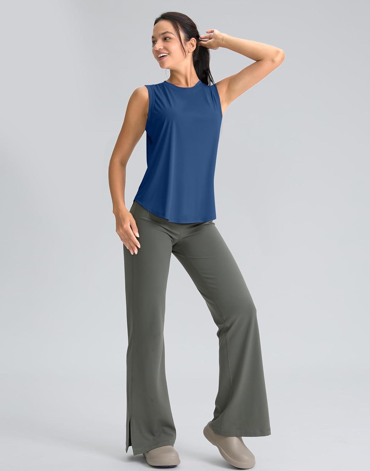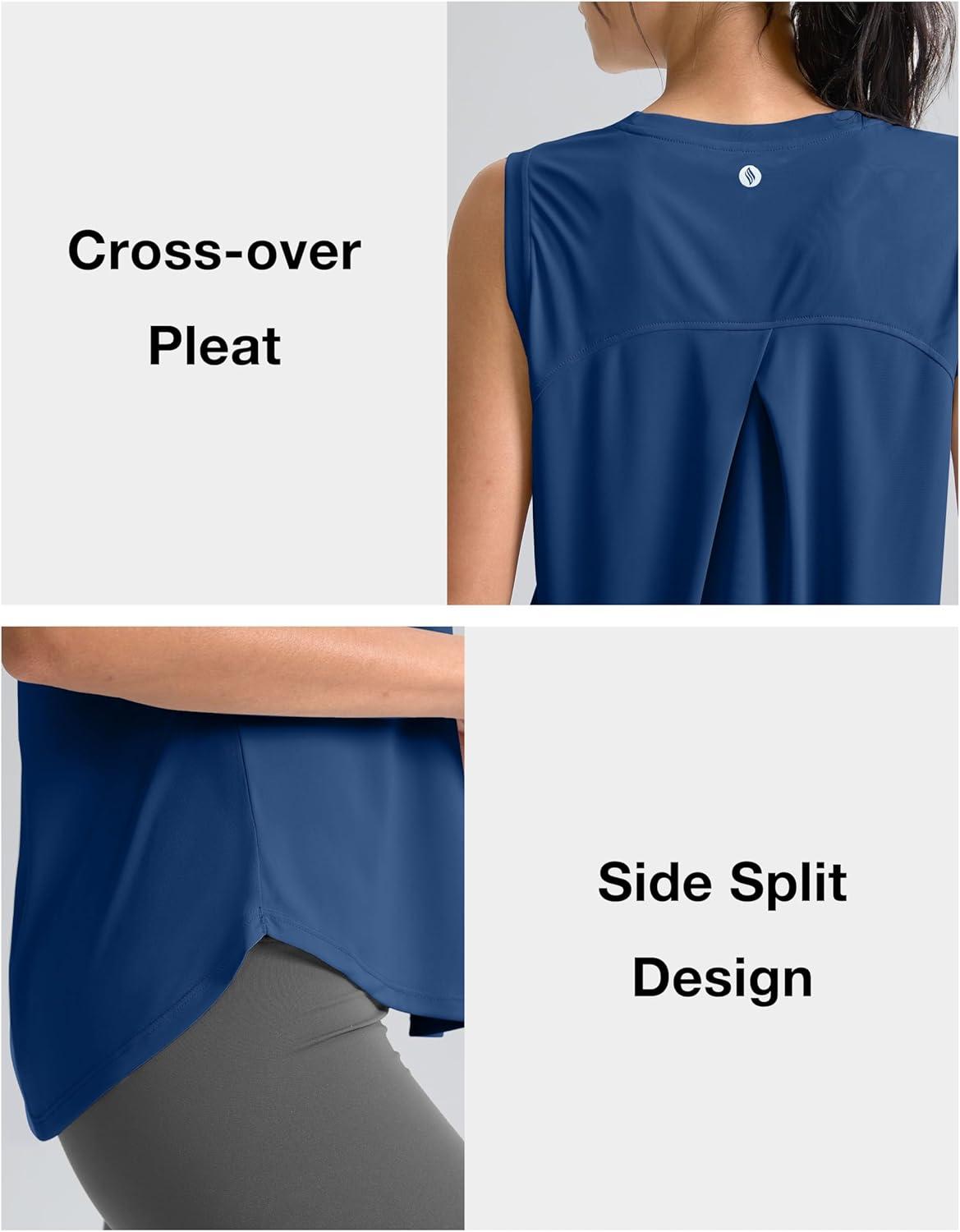 SANTINY Women’s Sleeveless Workout Tops Breathable Lightweight Active Tennis Yoga Shirts Athletic Running Tank Tops for Women(Blue)