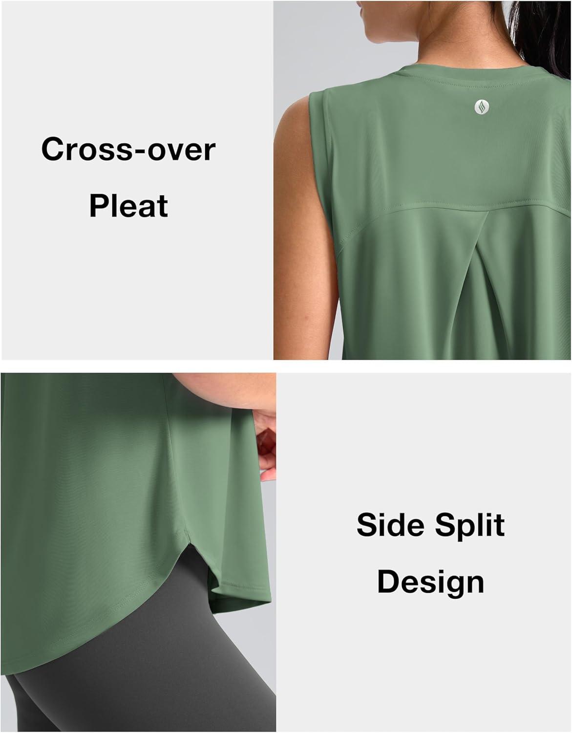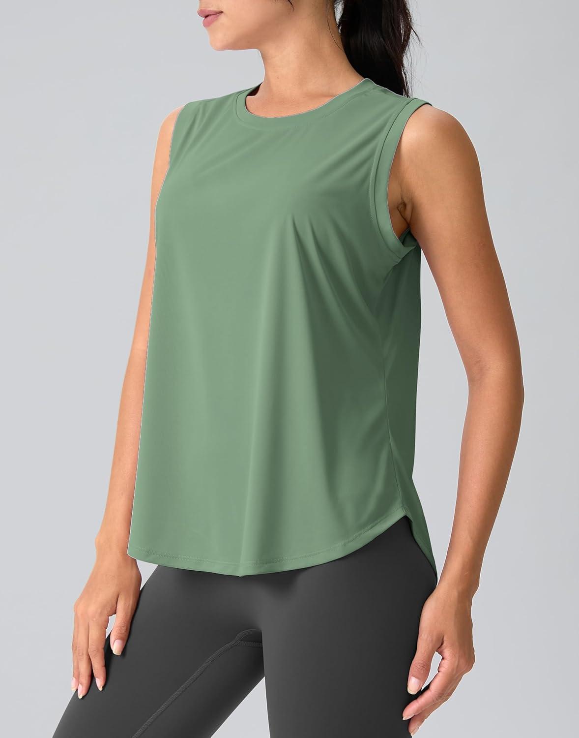 SANTINY Women’s Sleeveless Workout Tops Breathable Lightweight Active Tennis Yoga Shirts Athletic Running Tank Tops for Women(Grey Sage)