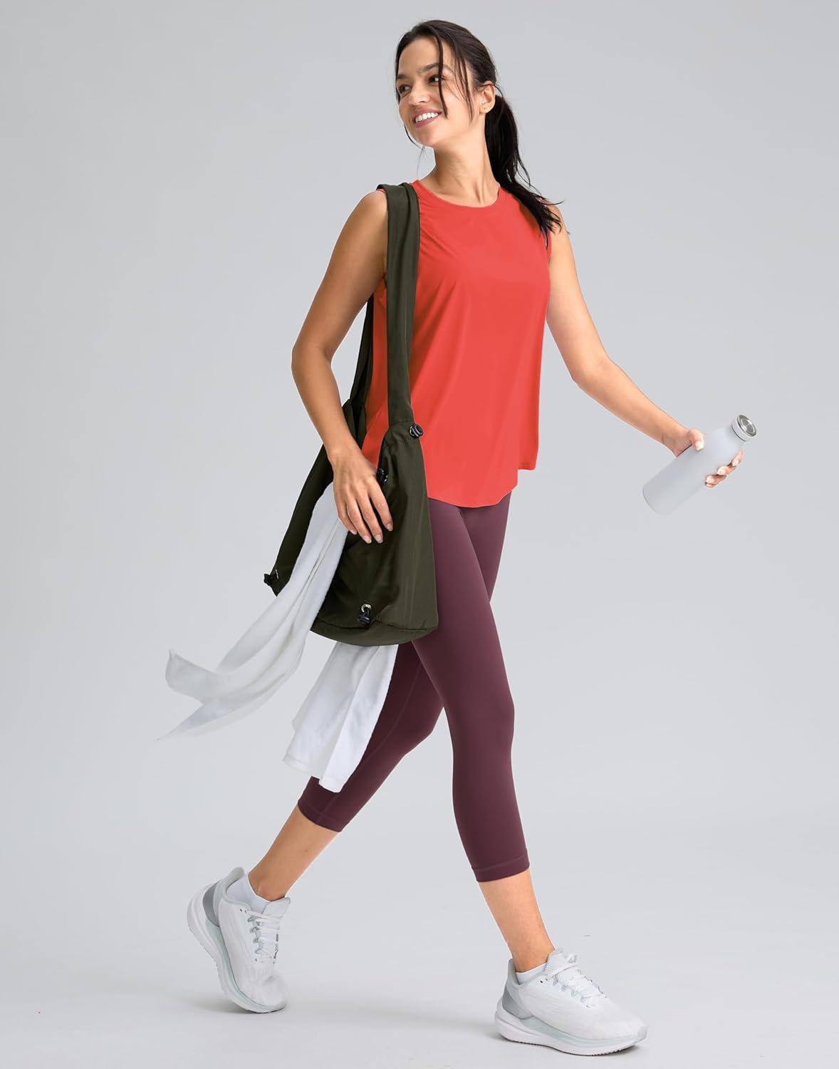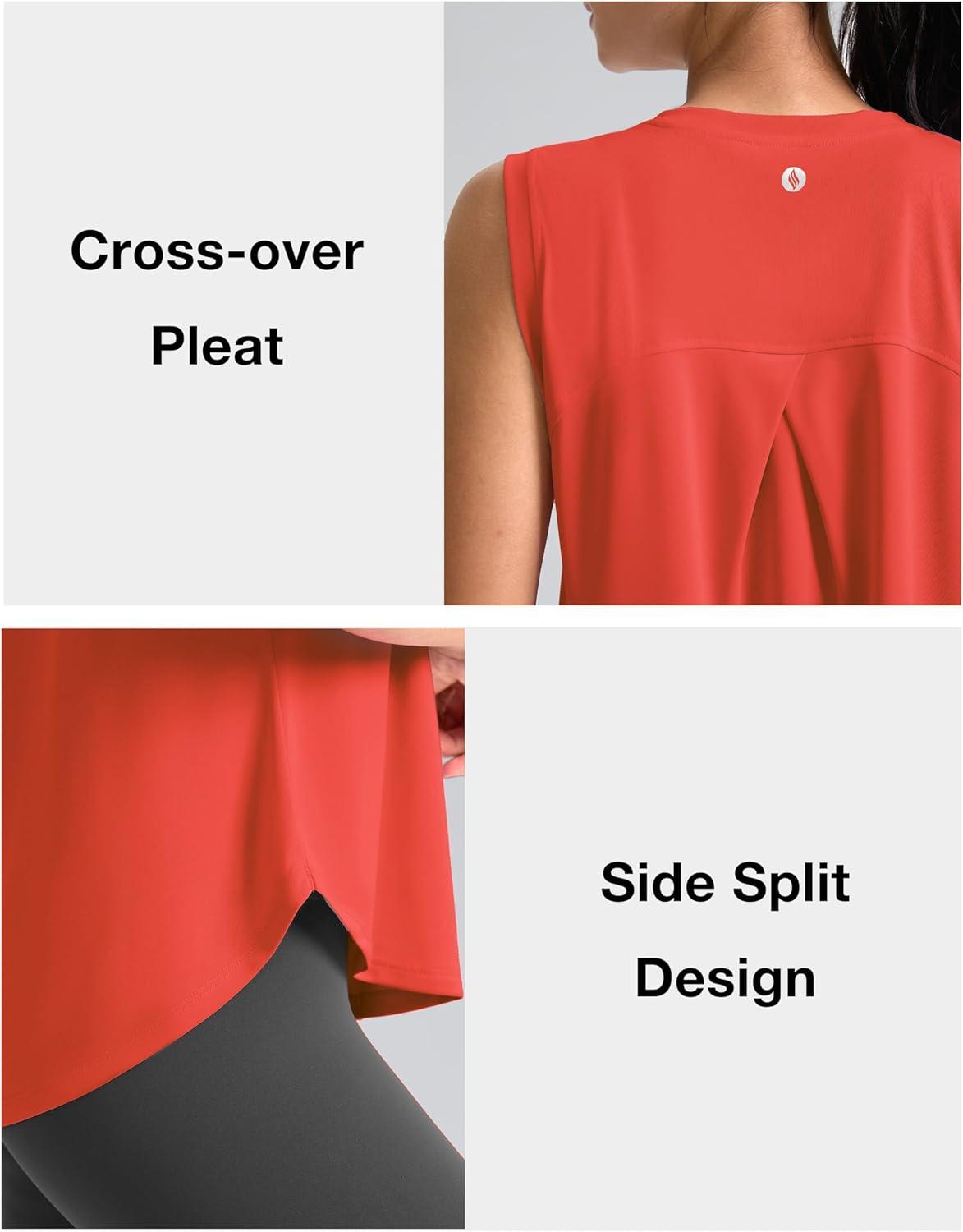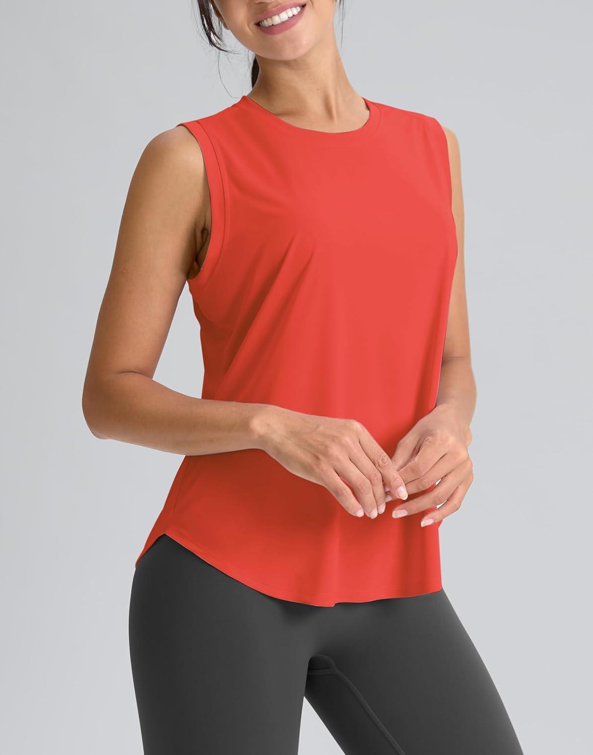 SANTINY Women’s Sleeveless Workout Tops Breathable Lightweight Active Tennis Yoga Shirts Athletic Running Tank Tops for Women(Red Orange)