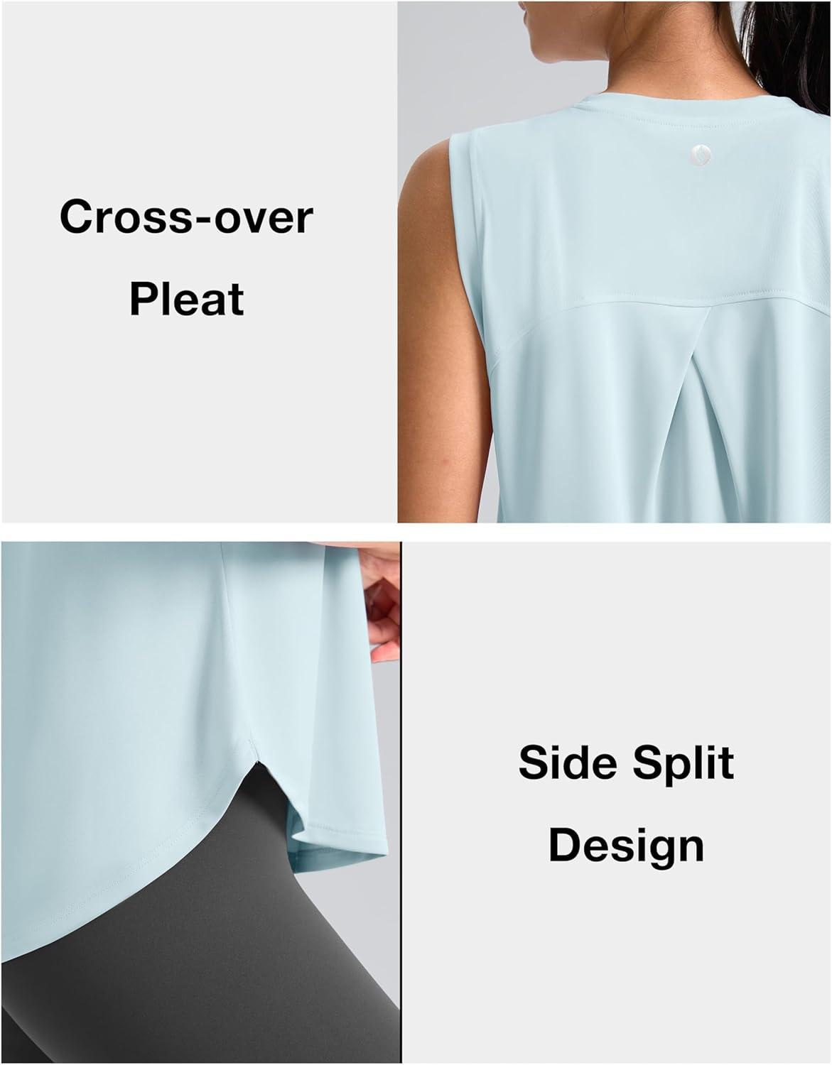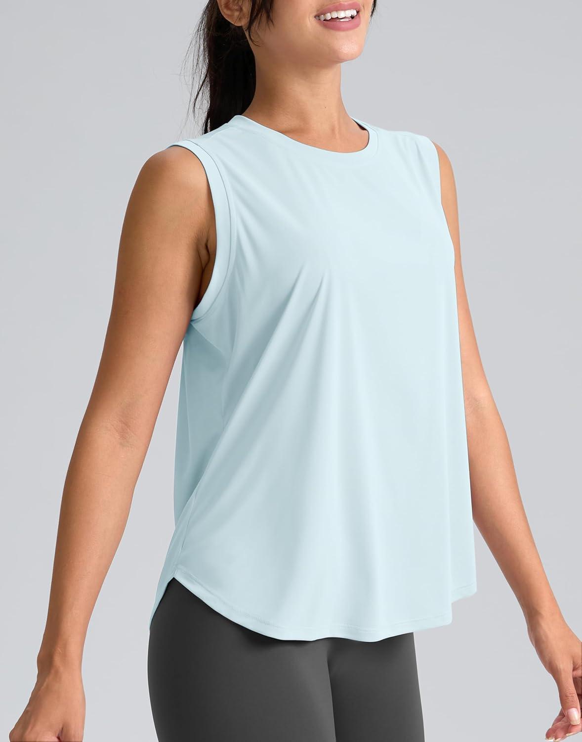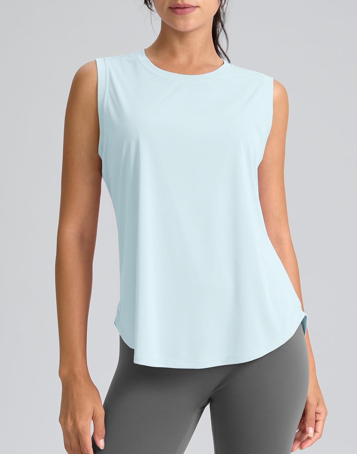 SANTINY Women’s Sleeveless Workout Tops Breathable Lightweight Active Tennis Yoga Shirts Athletic Running Tank Tops for Women(Sky Blue)