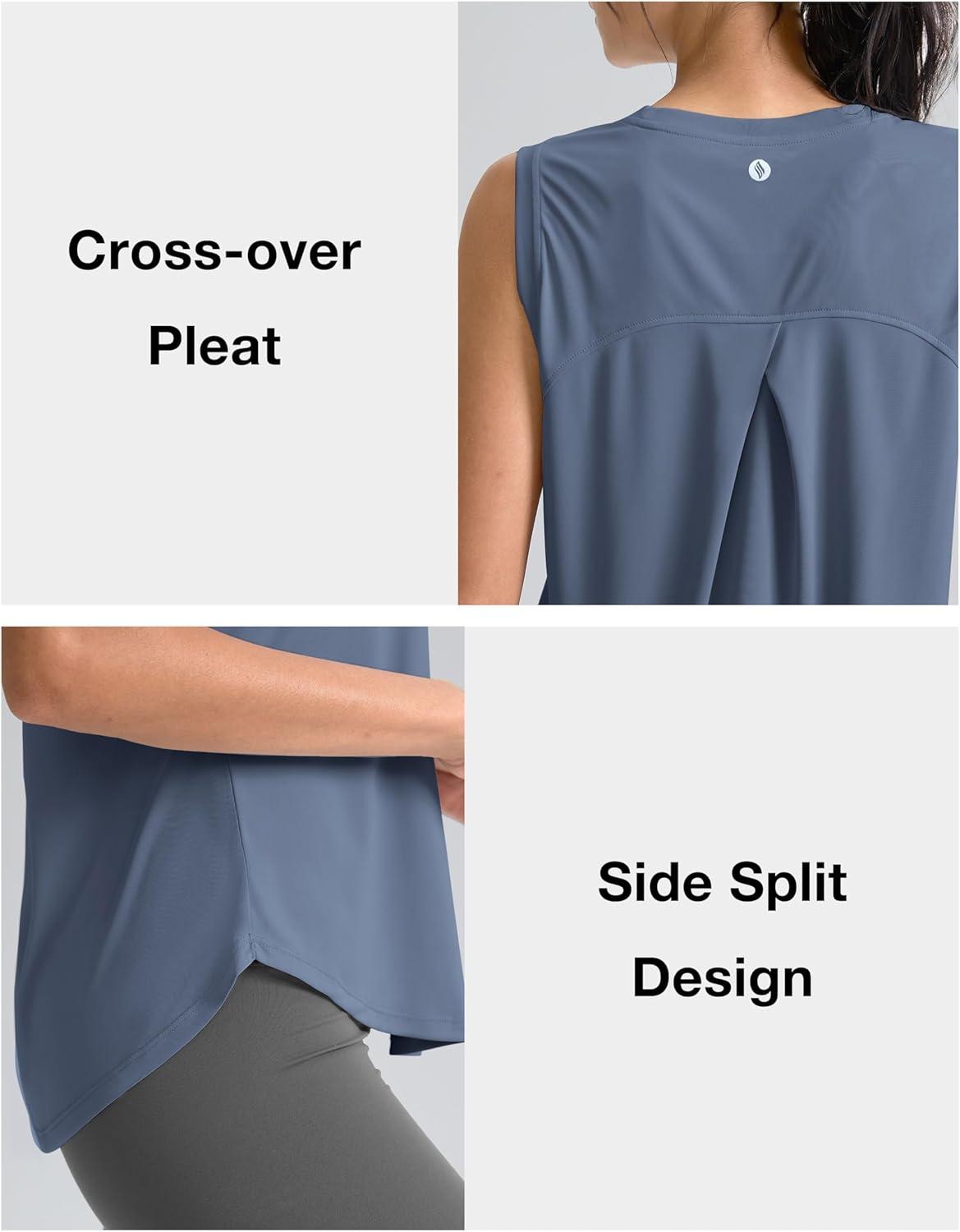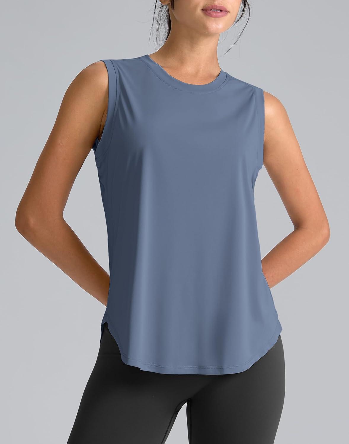 SANTINY Women’s Sleeveless Workout Tops Breathable Lightweight Active Tennis Yoga Shirts Athletic Running Tank Tops for Women(Slate Blue)