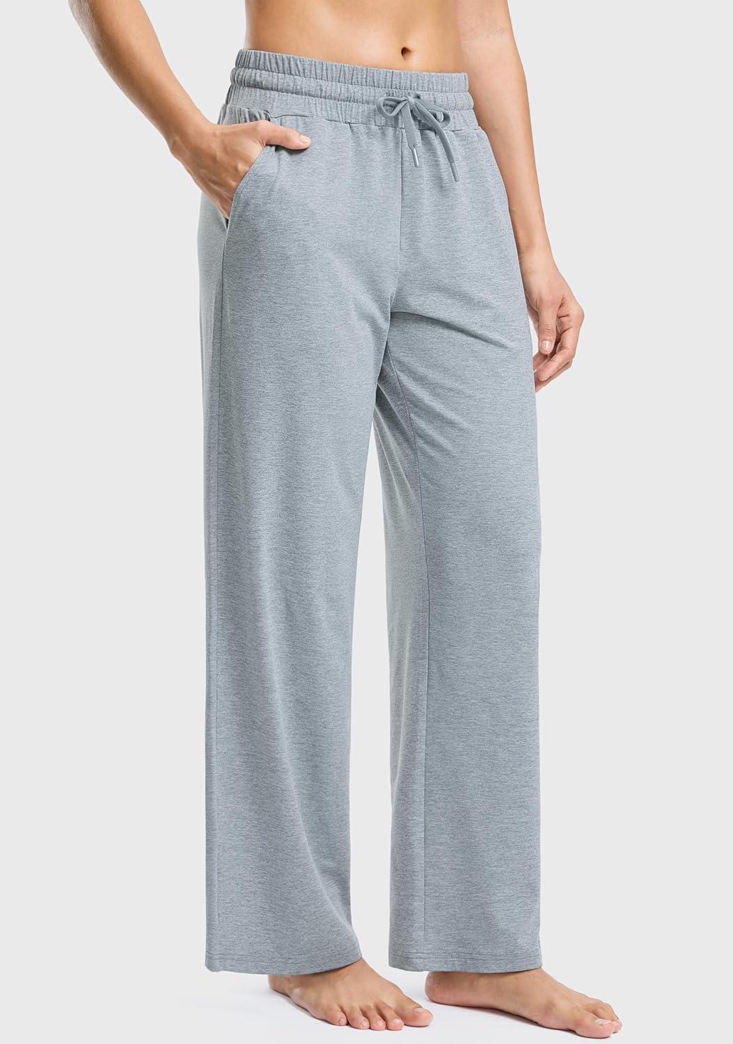 SANTINY Women’s Soft Sweatpants Yoga Lounge Casual Pants Stretch Open Bottom Sweat Pants for Women with Pockets(Heather Grey)
