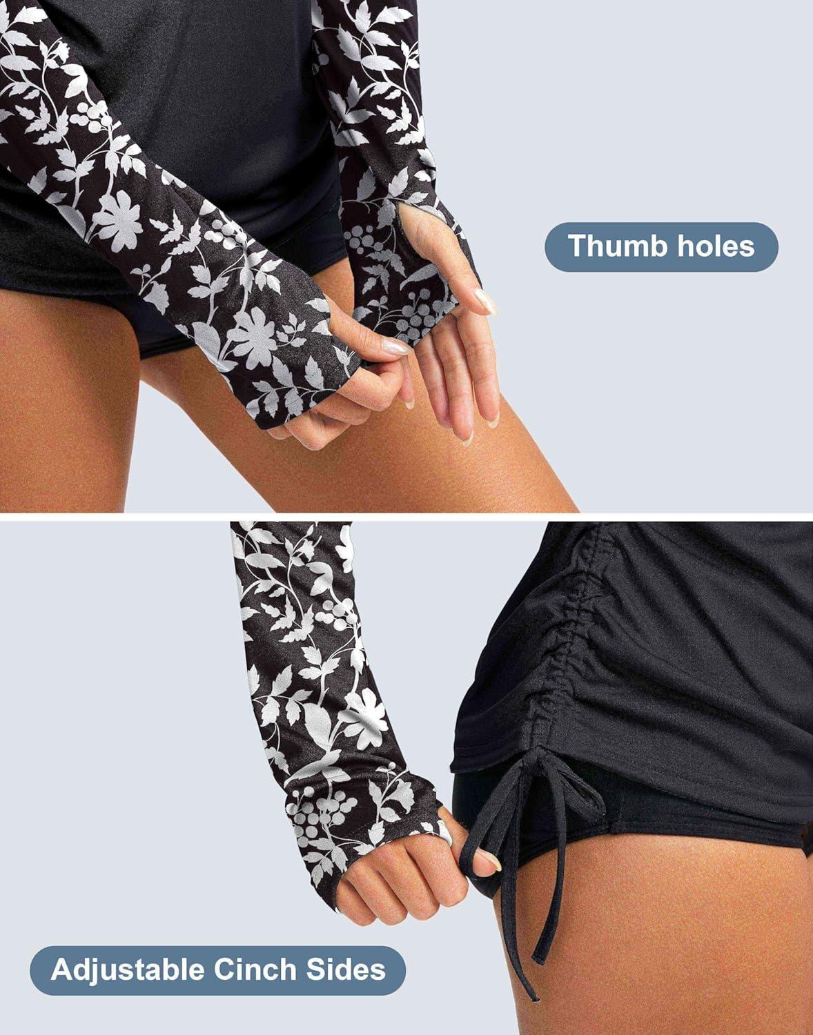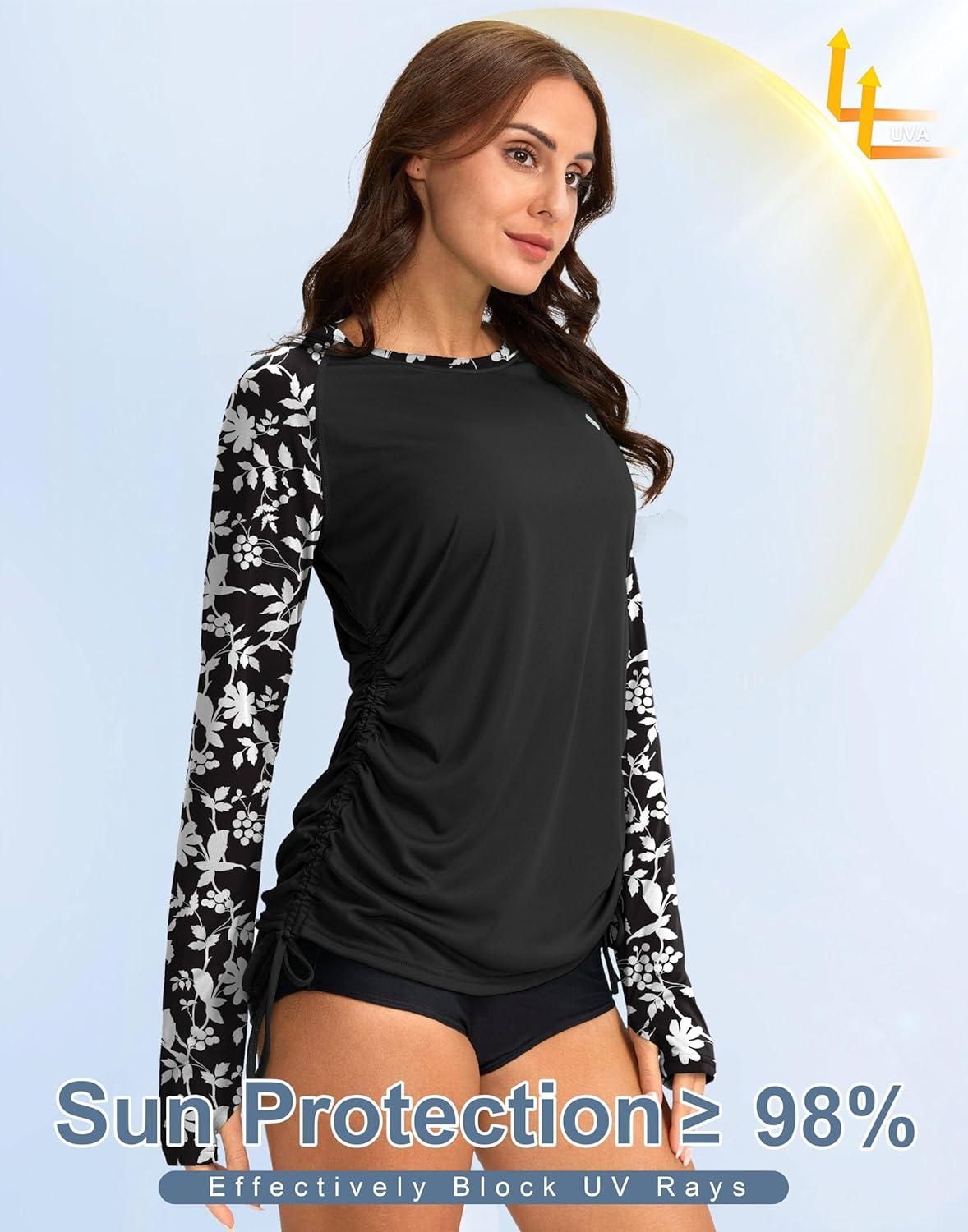 SANTINY Women’s UPF50+ Rash Guard SPF Long Sleeve Swimsuits Top UV Sun Protection Swim Shirts for Woman(Black Flower)
