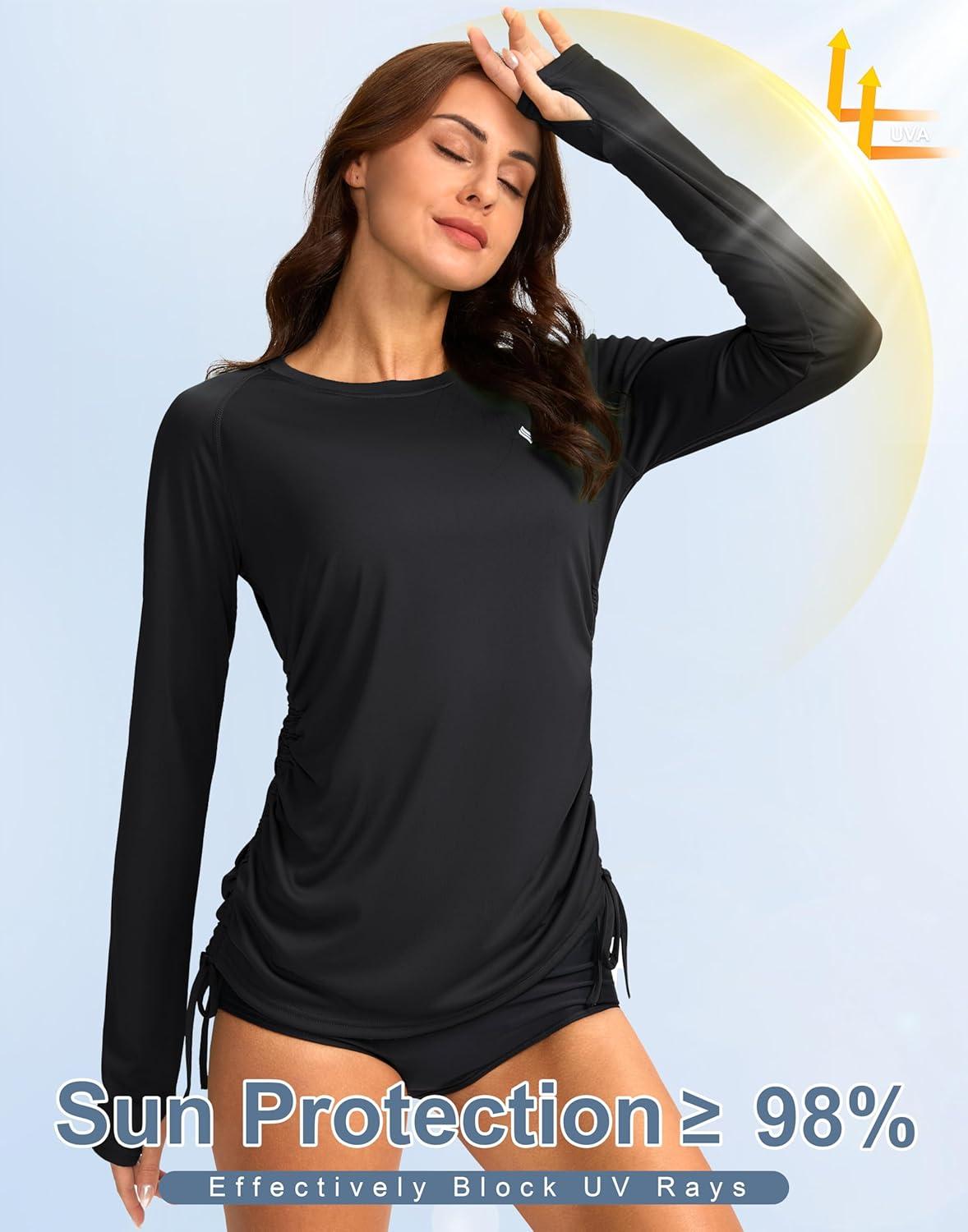 SANTINY Women’s UPF50+ Rash Guard SPF Long Sleeve Swimsuits Top UV Sun Protection Swim Shirts for Woman(Black)