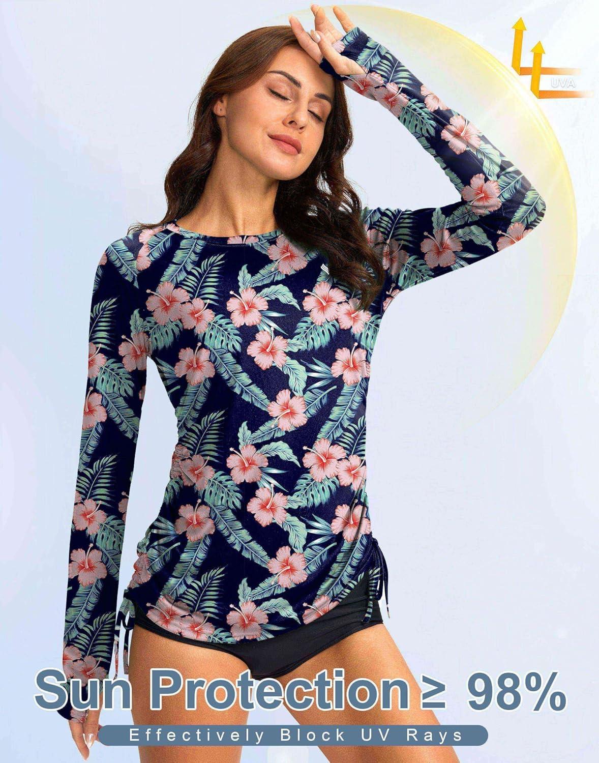 SANTINY Women’s UPF50+ Rash Guard SPF Long Sleeve Swimsuits Top UV Sun Protection Swim Shirts for Woman(Flower)
