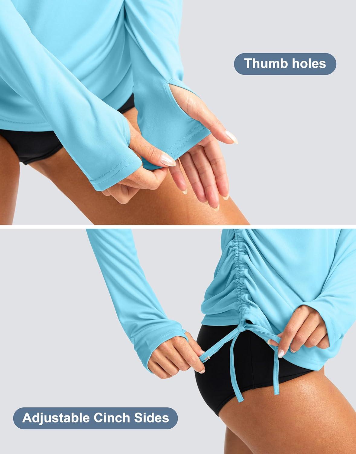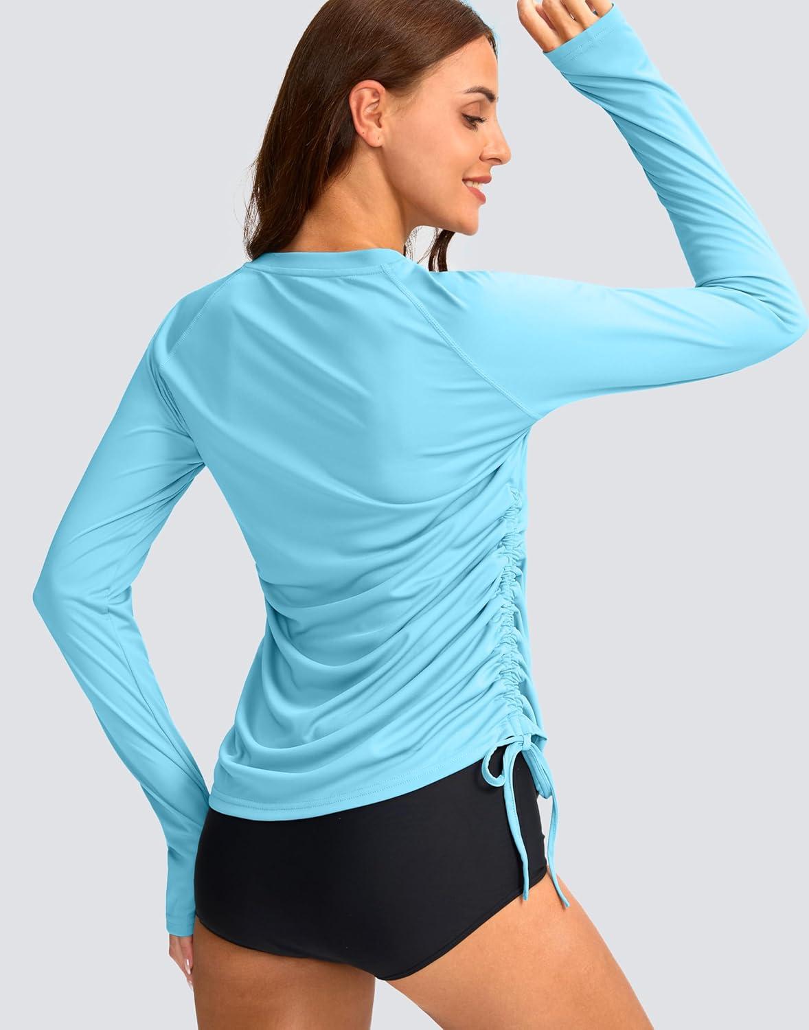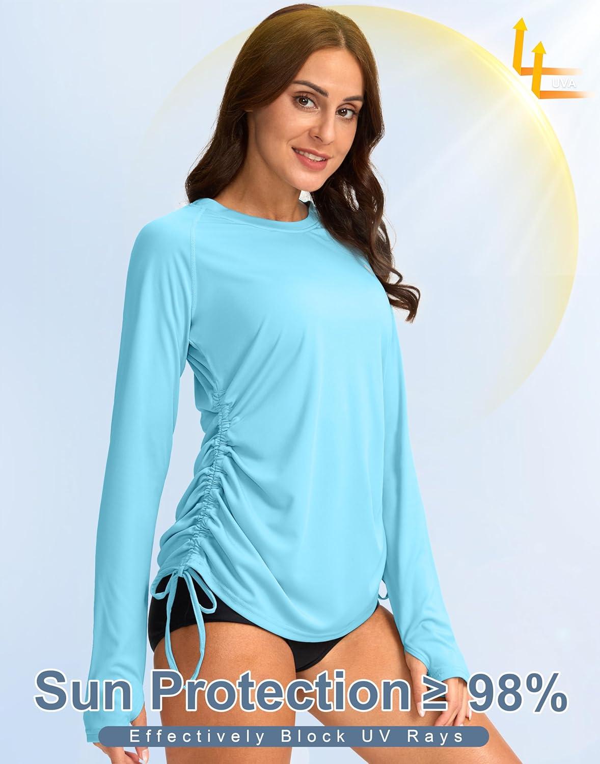 SANTINY Women’s UPF50+ Rash Guard SPF Long Sleeve Swimsuits Top UV Sun Protection Swim Shirts for Woman(Light Blue)