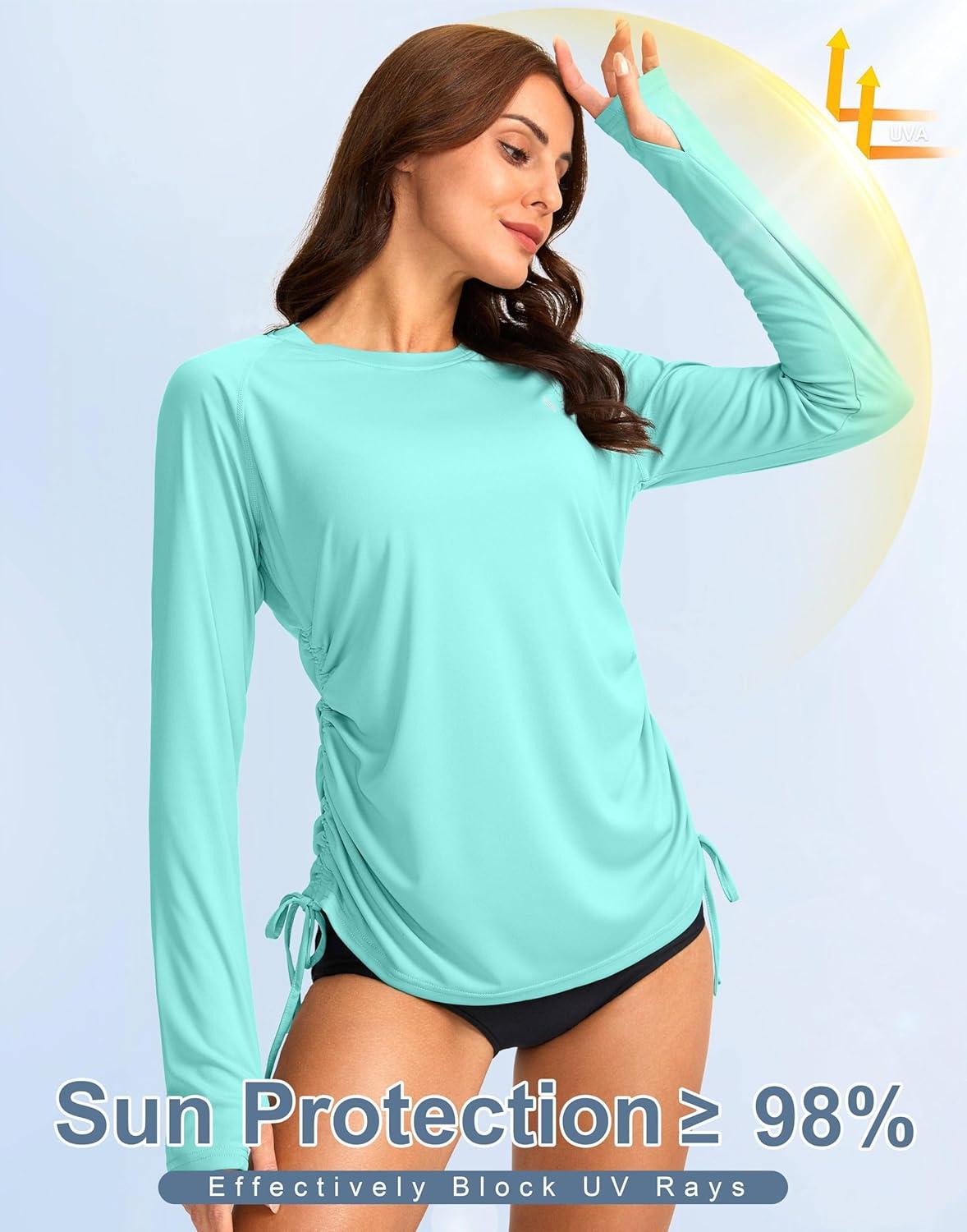 SANTINY Women’s UPF50+ Rash Guard SPF Long Sleeve Swimsuits Top UV Sun Protection Swim Shirts for Woman(Light Green)