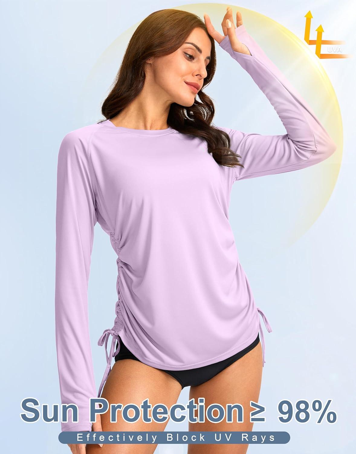 SANTINY Women’s UPF50+ Rash Guard SPF Long Sleeve Swimsuits Top UV Sun Protection Swim Shirts for Woman(Light Purple)