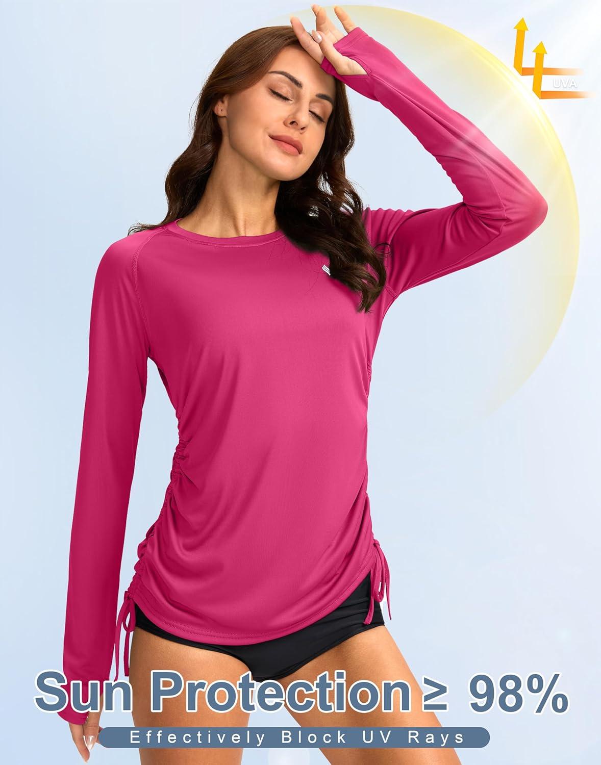 SANTINY Women’s UPF50+ Rash Guard SPF Long Sleeve Swimsuits Top UV Sun Protection Swim Shirts for Woman(Rose)