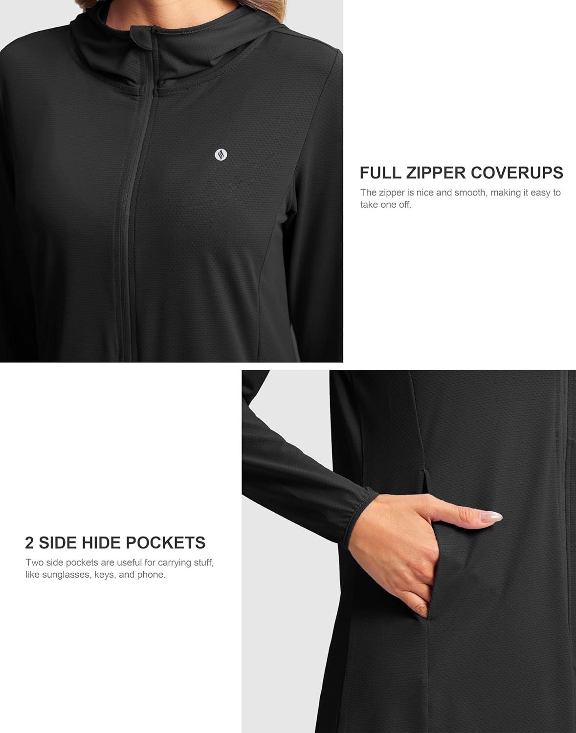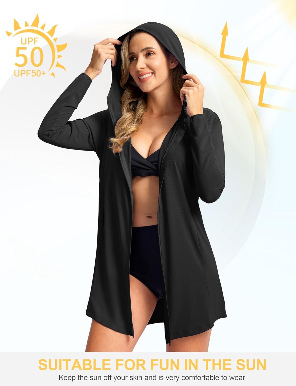 SANTINY Women’s UPF50+ Swim Cover Up Sun Protection Hoodie Long UV Jacket SPF Lightweight Swimsuit Beach Cover Ups for Women(Black)