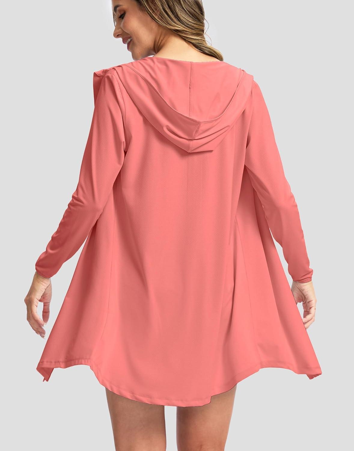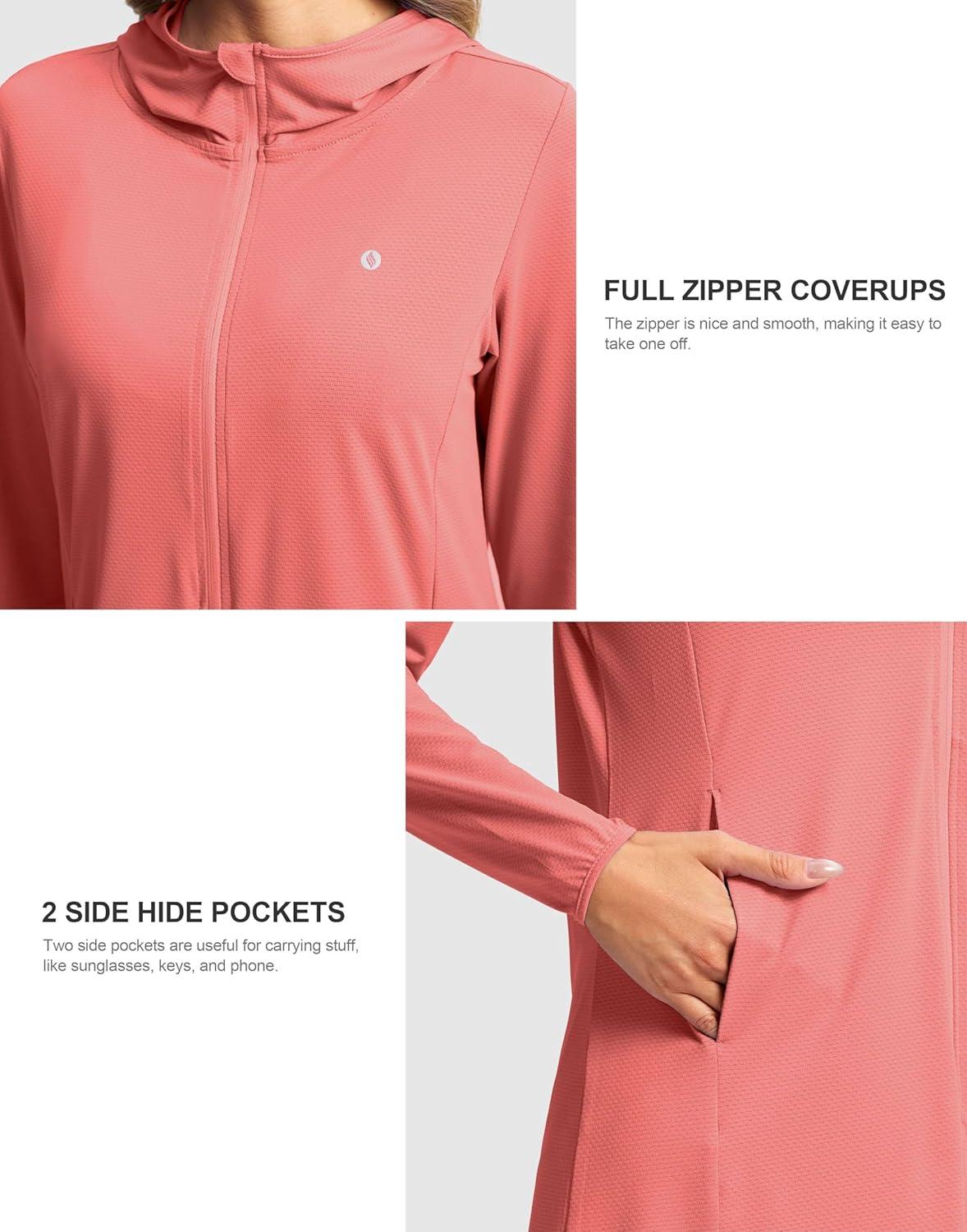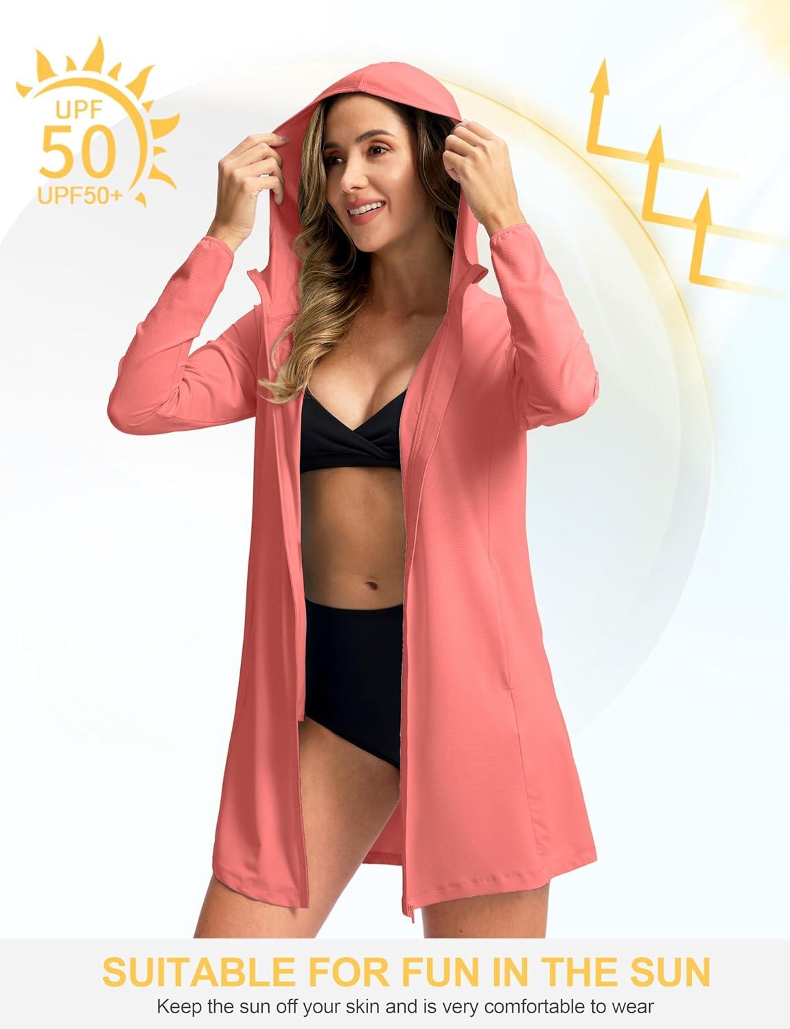 SANTINY Women’s UPF50+ Swim Cover Up Sun Protection Hoodie Long UV Jacket SPF Lightweight Swimsuit Beach Cover Ups for Women(Coral)