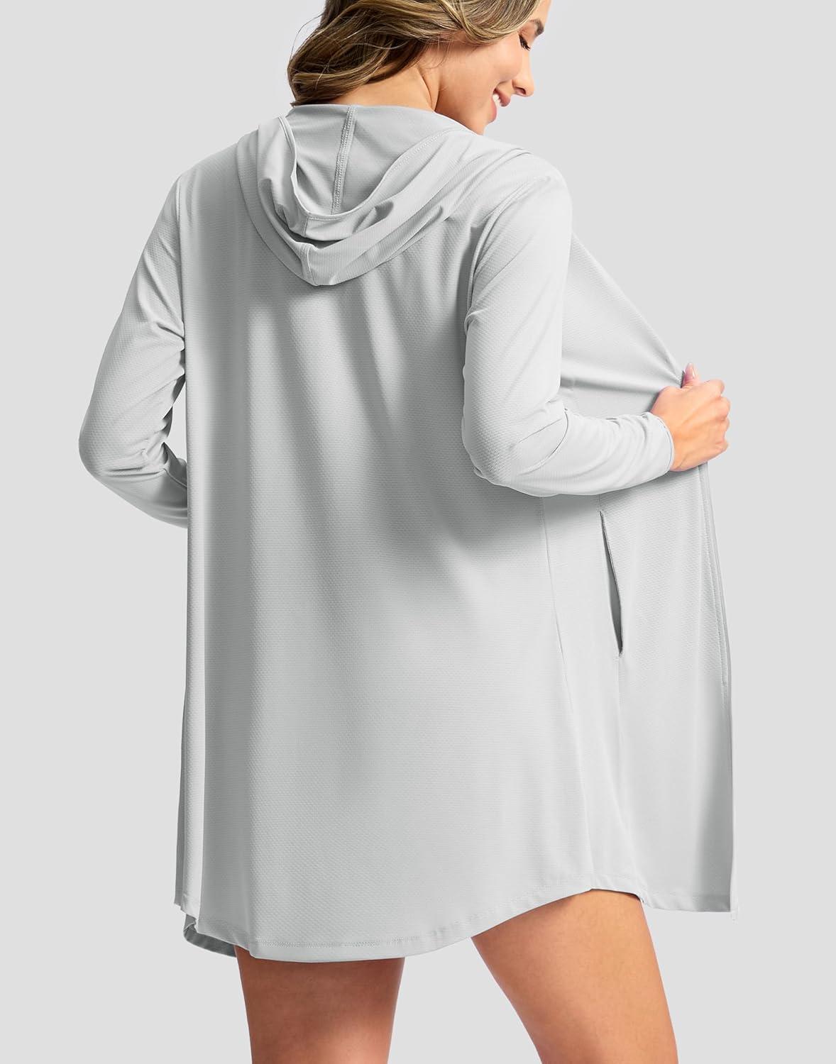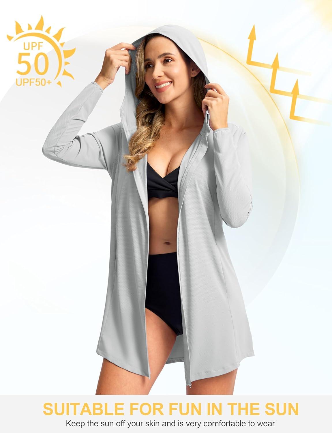 SANTINY Women’s UPF50+ Swim Cover Up Sun Protection Hoodie Long UV Jacket SPF Lightweight Swimsuit Beach Cover Ups for Women(Light Grey)