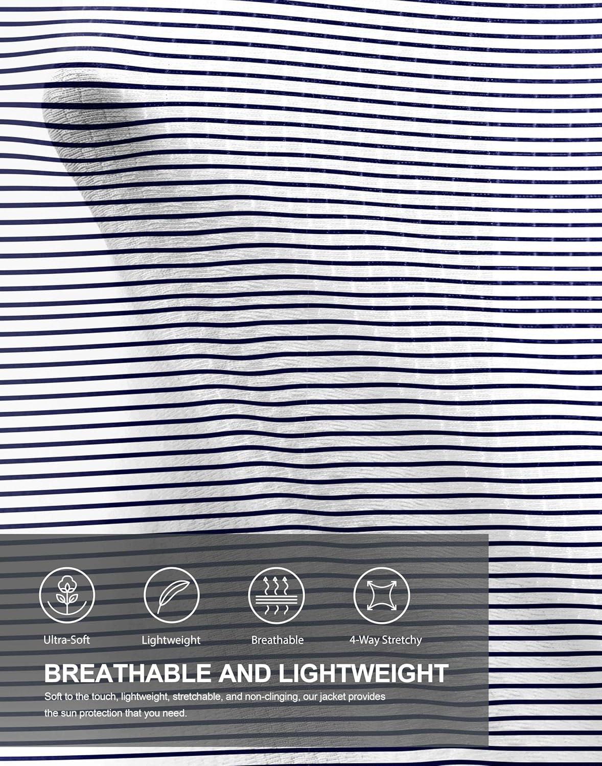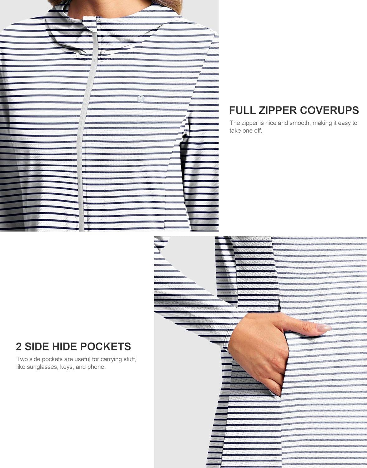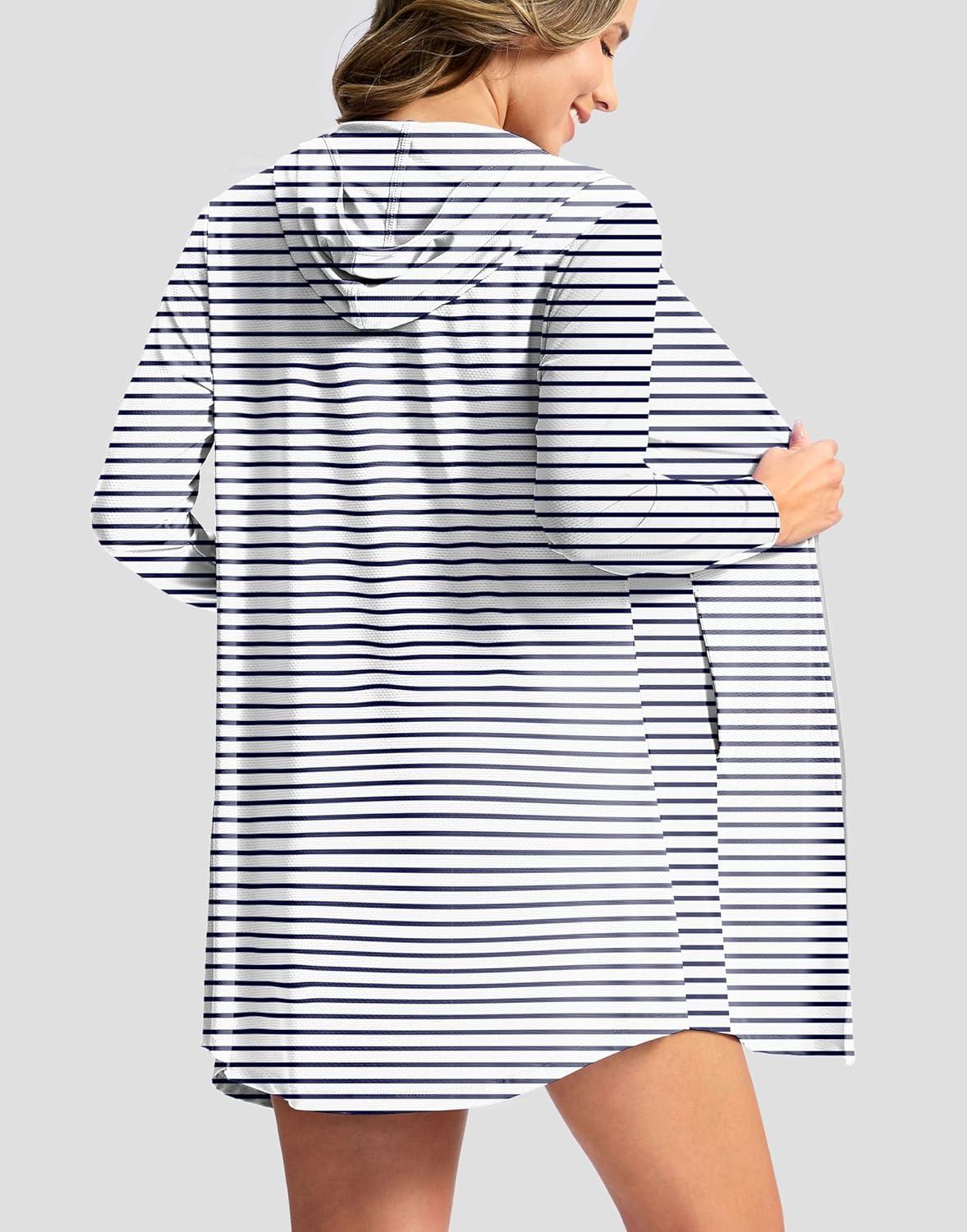 SANTINY Women’s UPF50+ Swim Cover Up Sun Protection Hoodie Long UV Jacket SPF Lightweight Swimsuit Beach Cover Ups for Women(Navy Stripe)
