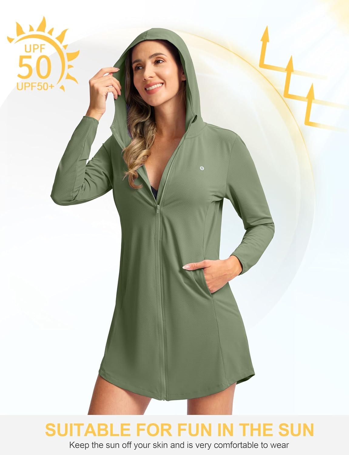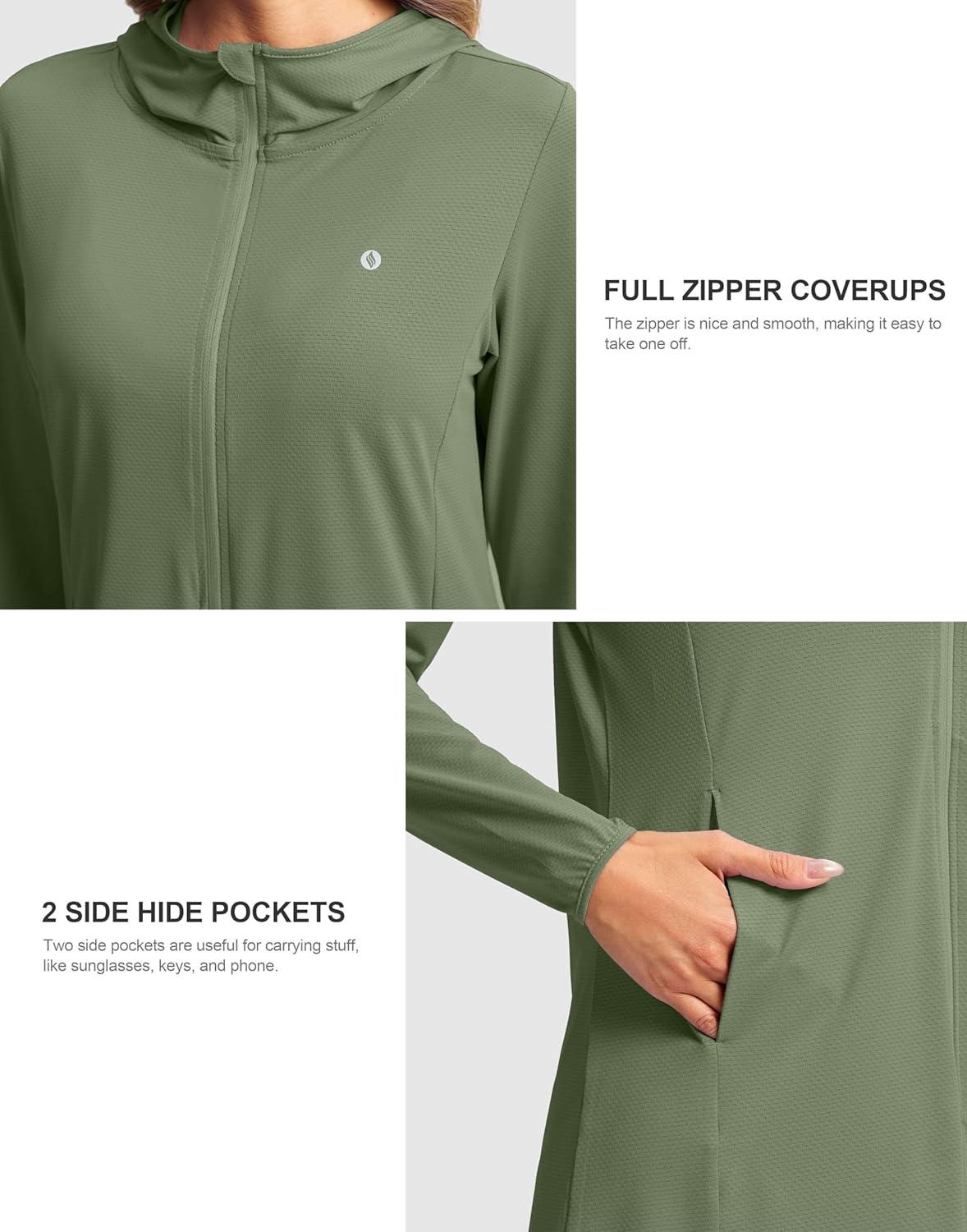 SANTINY Women’s UPF50+ Swim Cover Up Sun Protection Hoodie Long UV Jacket SPF Lightweight Swimsuit Beach Cover Ups for Women(Olive)