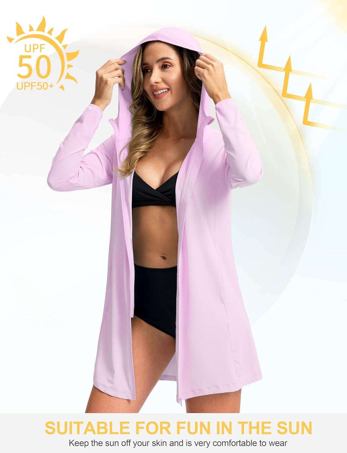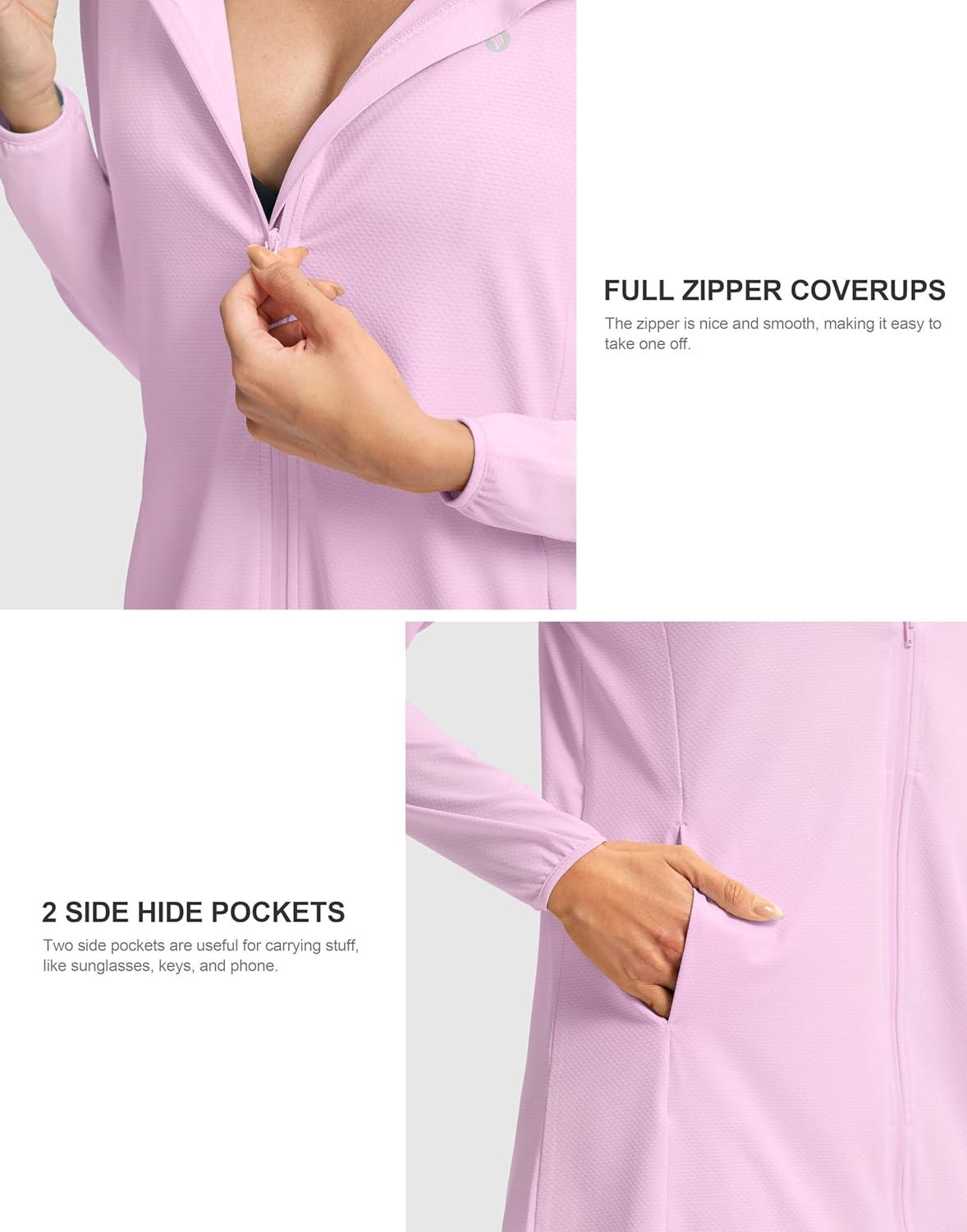 SANTINY Women’s UPF50+ Swim Cover Up Sun Protection Hoodie Long UV Jacket SPF Lightweight Swimsuit Beach Cover Ups for Women(Pink)