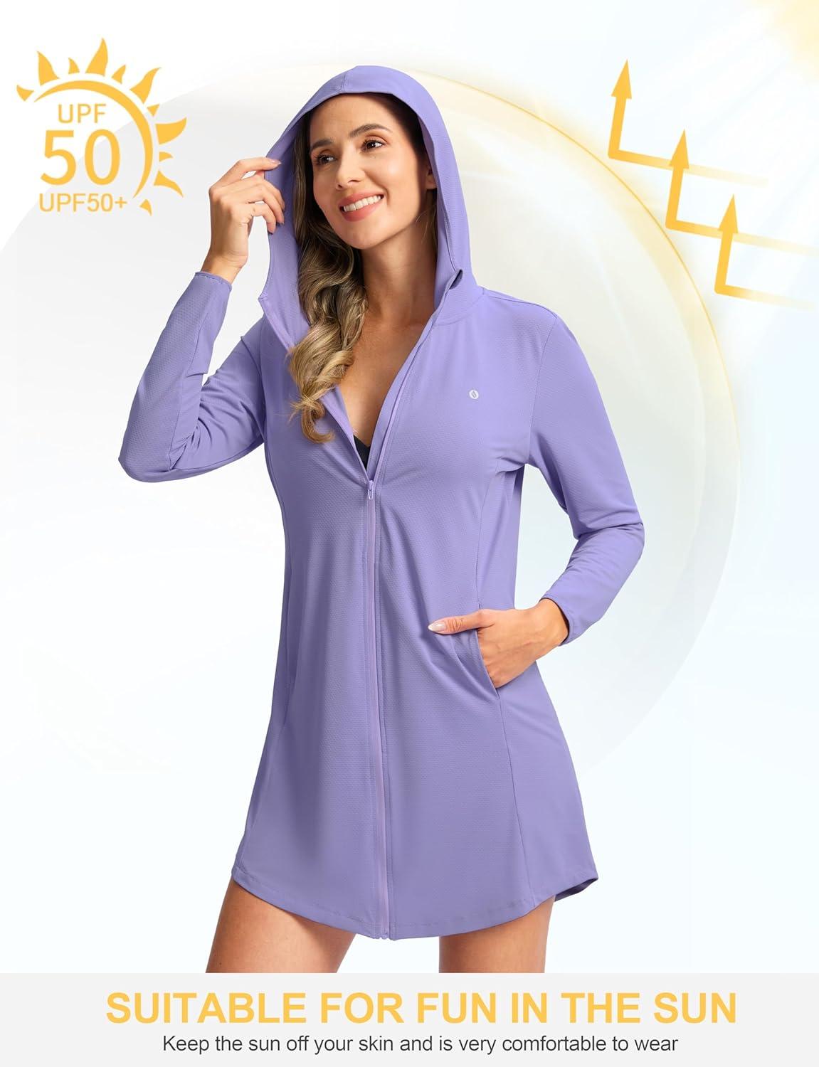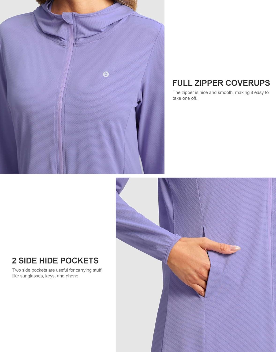 SANTINY Women’s UPF50+ Swim Cover Up Sun Protection Hoodie Long UV Jacket SPF Lightweight Swimsuit Beach Cover Ups for Women(Purple)