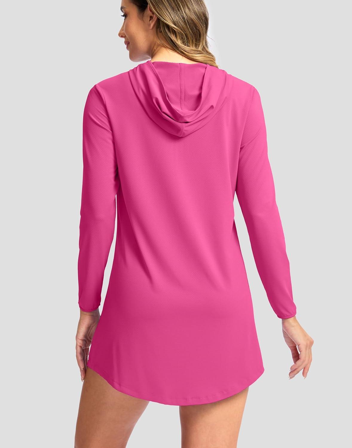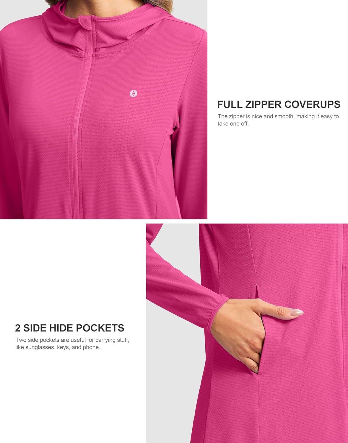SANTINY Women’s UPF50+ Swim Cover Up Sun Protection Hoodie Long UV Jacket SPF Lightweight Swimsuit Beach Cover Ups for Women(Rose)