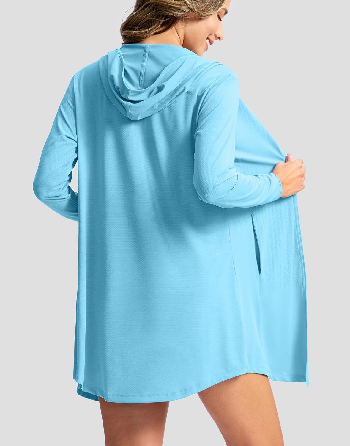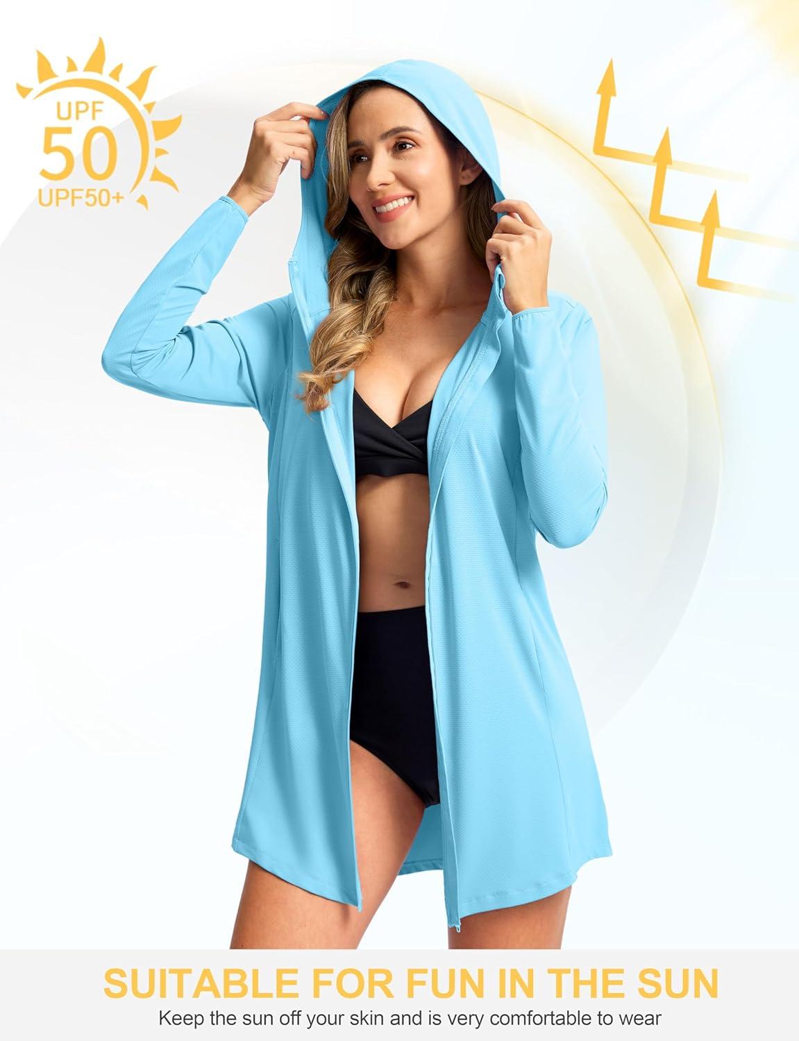 SANTINY Women’s UPF50+ Swim Cover Up Sun Protection Hoodie Long UV Jacket SPF Lightweight Swimsuit Beach Cover Ups for Women(Sky Blue)