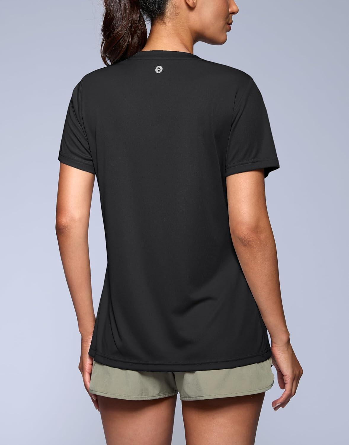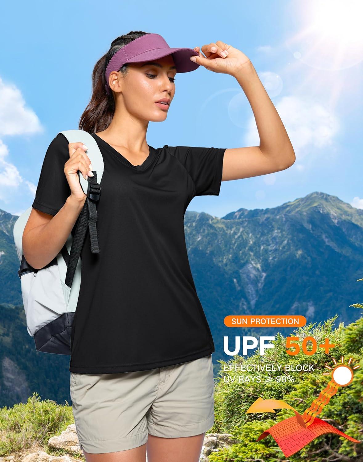 SANTINY Women’s V Neck Short Sleeve Shirts Uv Protectioin Moisture Wicking Hiking Workout Athletic T Shirts for Women(Black)