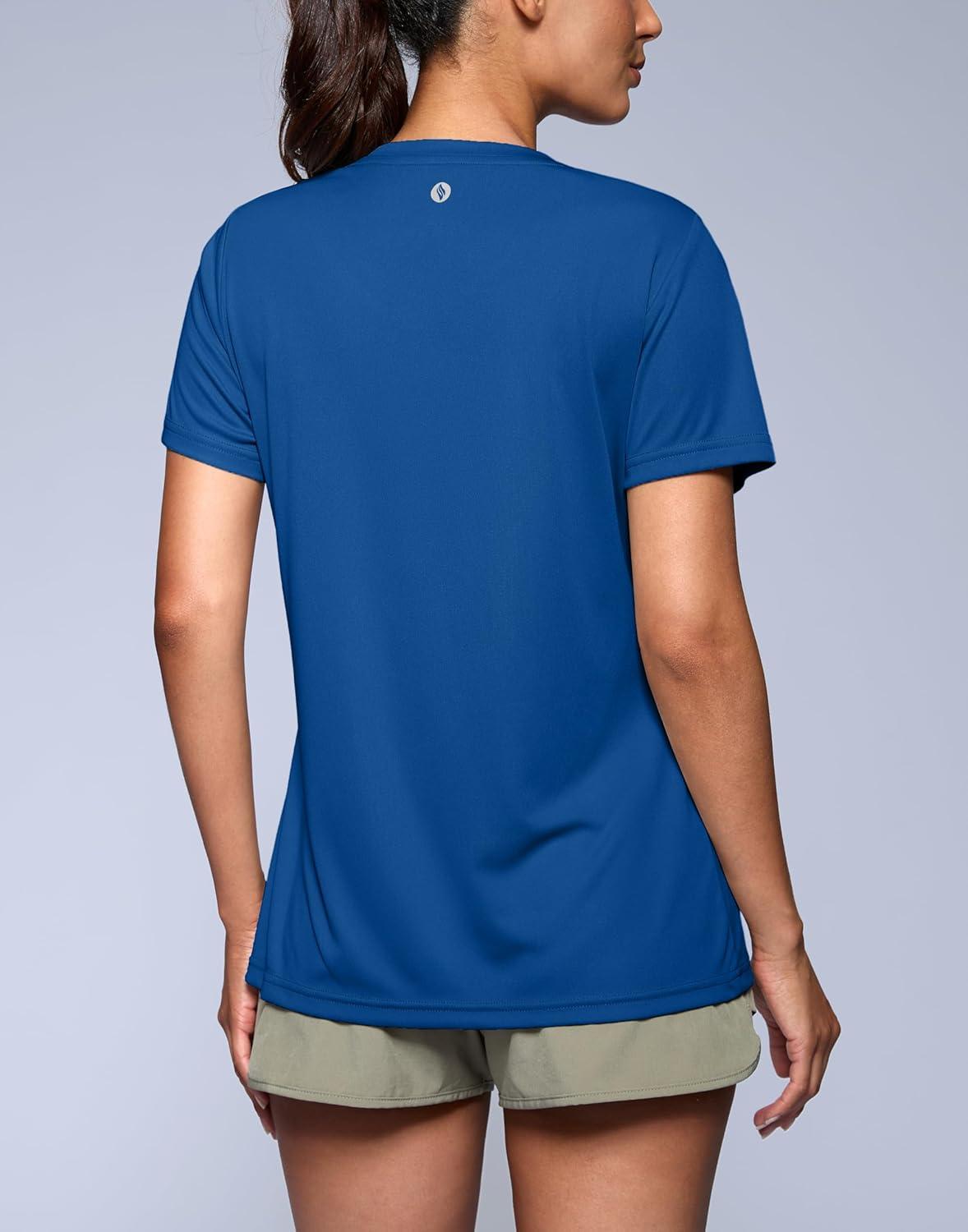 SANTINY Women’s V Neck Short Sleeve Shirts Uv Protectioin Moisture Wicking Hiking Workout Athletic T Shirts for Women(Deep Blue)