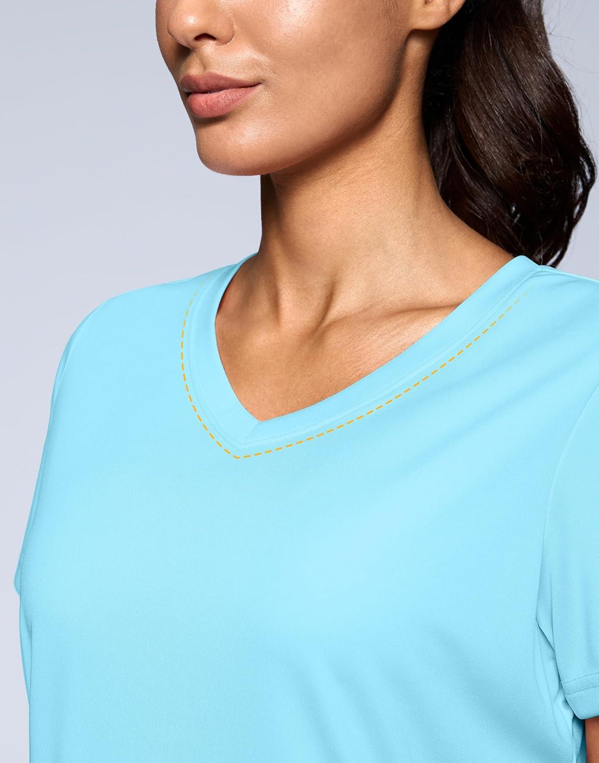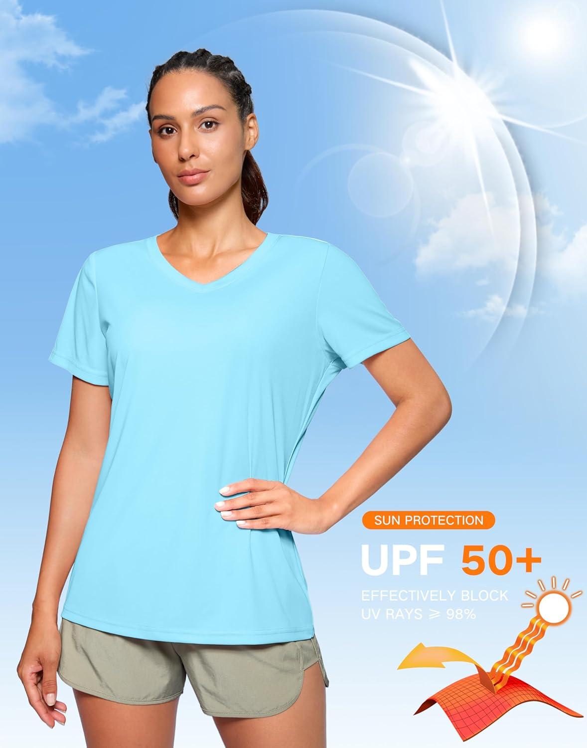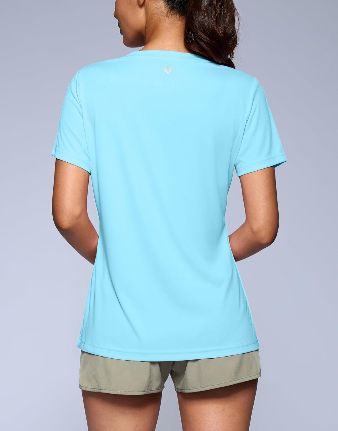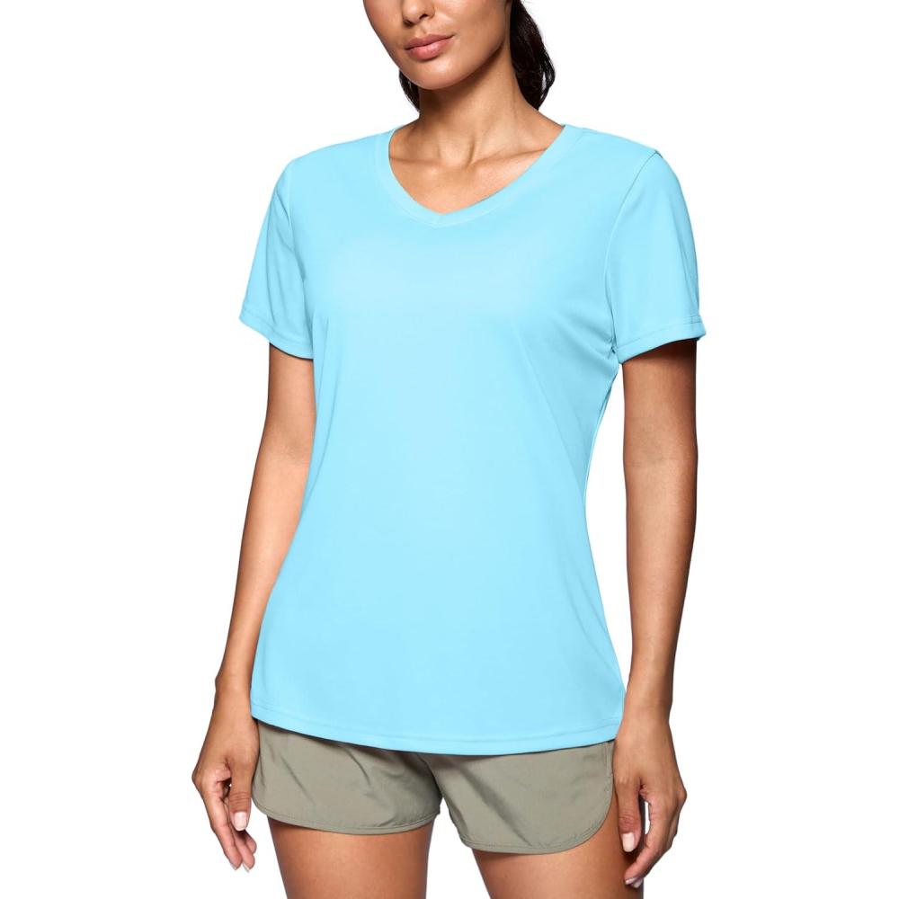 SANTINY Women’s V Neck Short Sleeve Shirts Uv Protectioin Moisture Wicking Hiking Workout Athletic T Shirts for Women(Light Blue)
