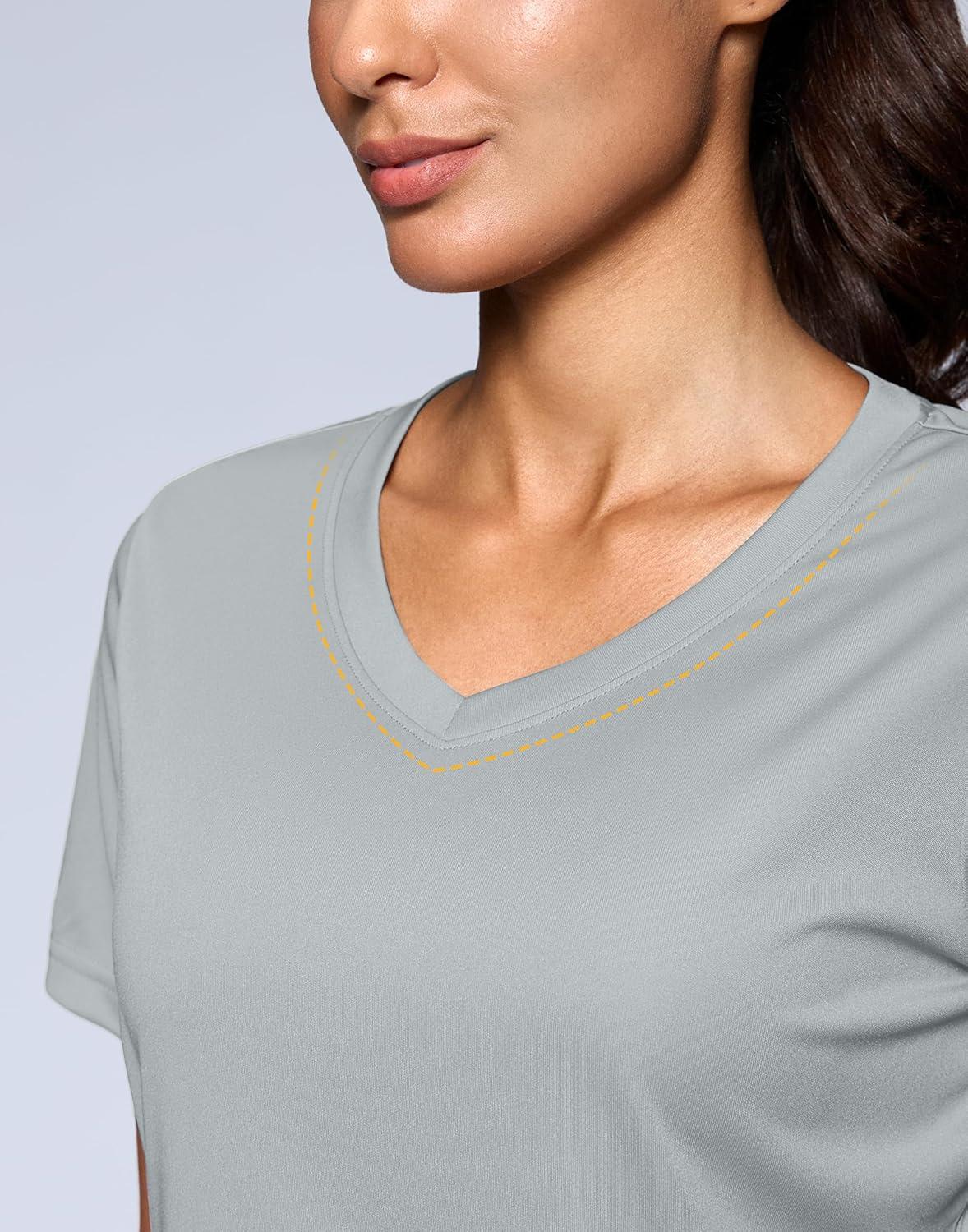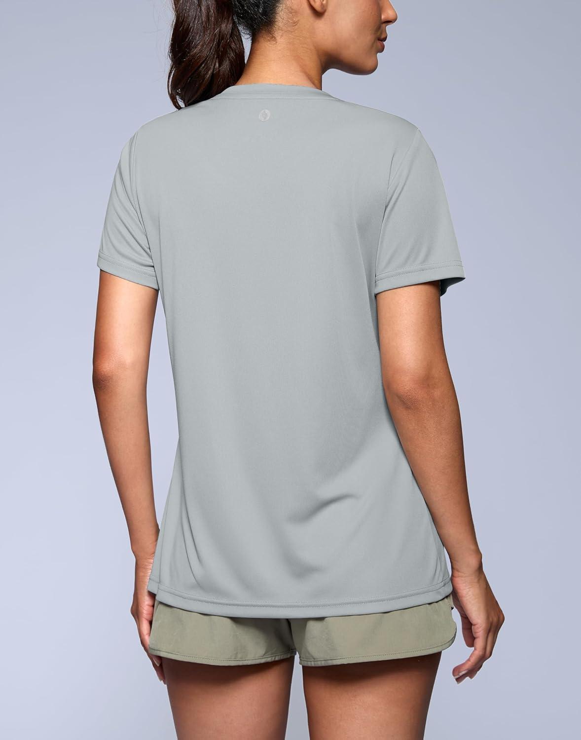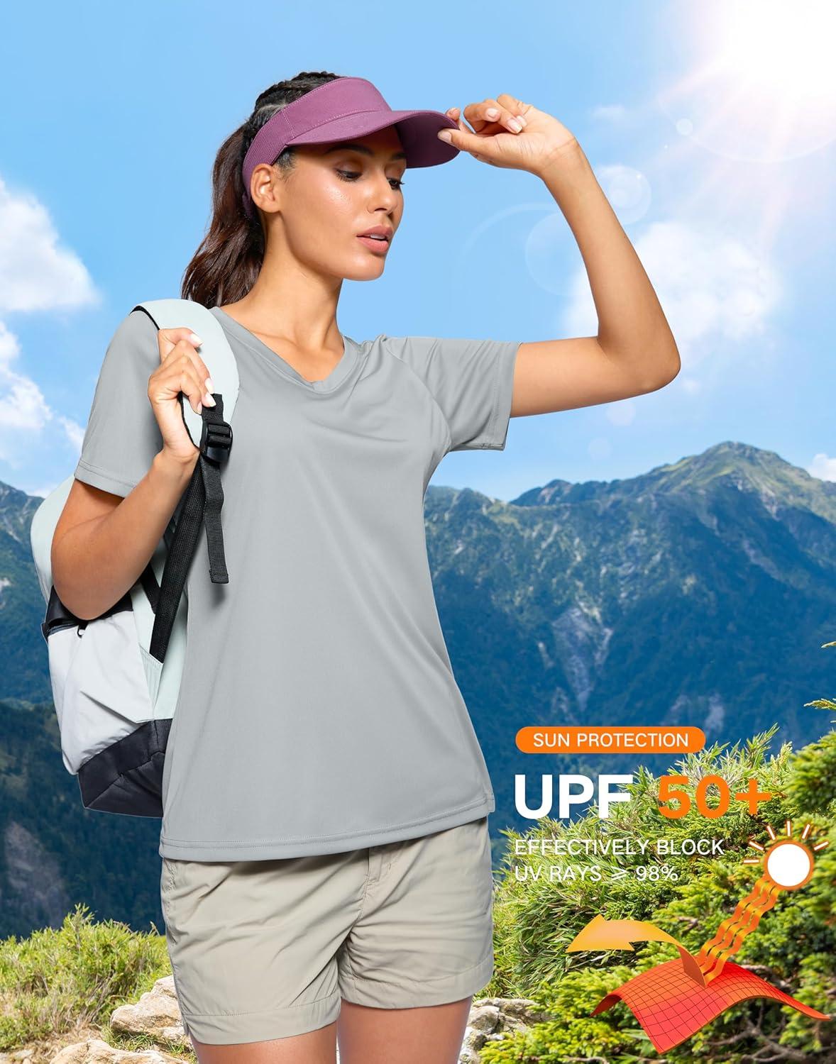 SANTINY Women’s V Neck Short Sleeve Shirts Uv Protectioin Moisture Wicking Hiking Workout Athletic T Shirts for Women(Light Grey)