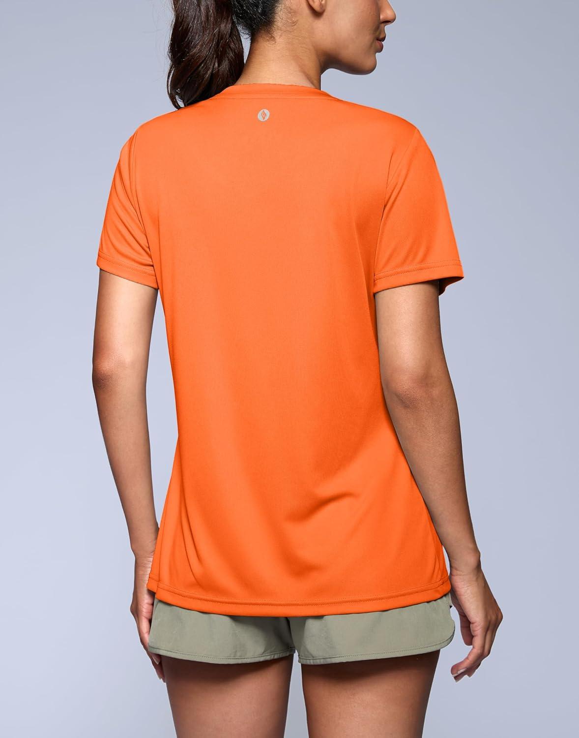 SANTINY Women’s V Neck Short Sleeve Shirts Uv Protectioin Moisture Wicking Hiking Workout Athletic T Shirts for Women(Orange)