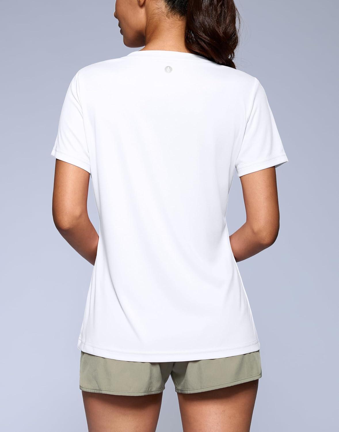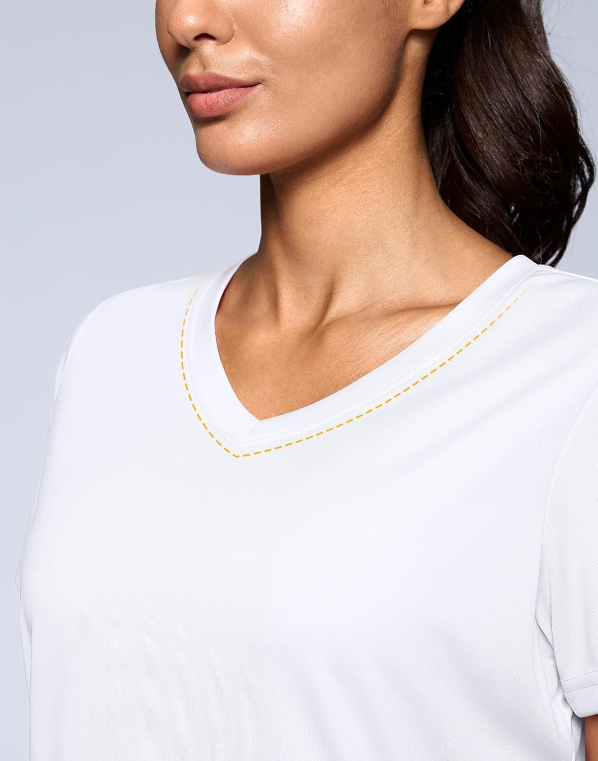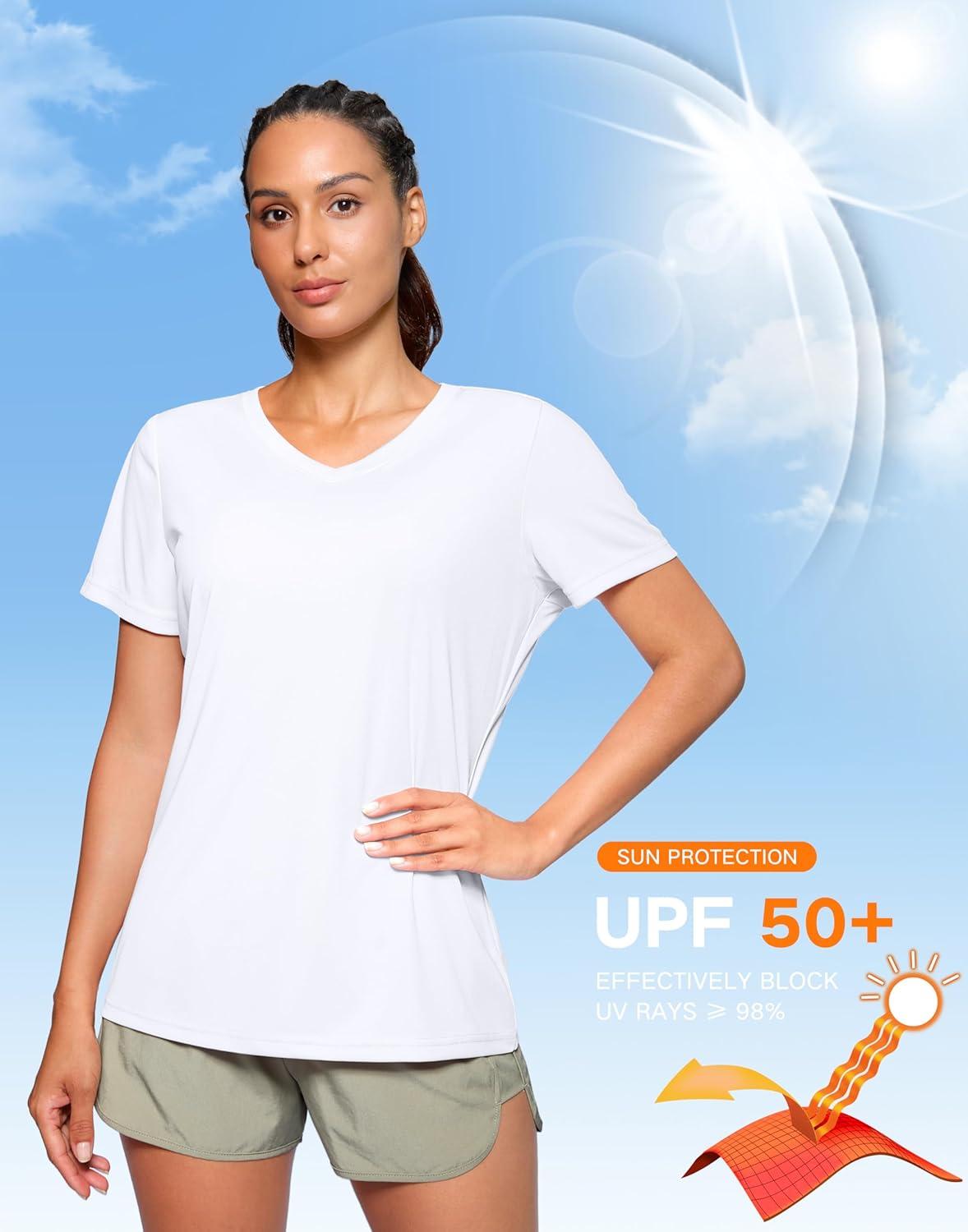 SANTINY Women’s V Neck Short Sleeve Shirts Uv Protectioin Moisture Wicking Hiking Workout Athletic T Shirts for Women(White)