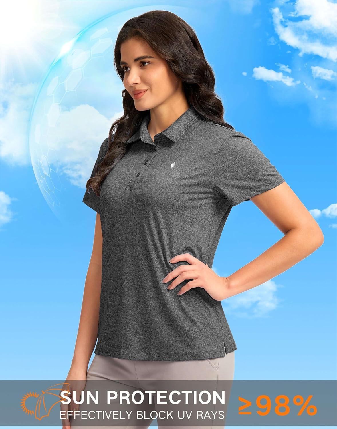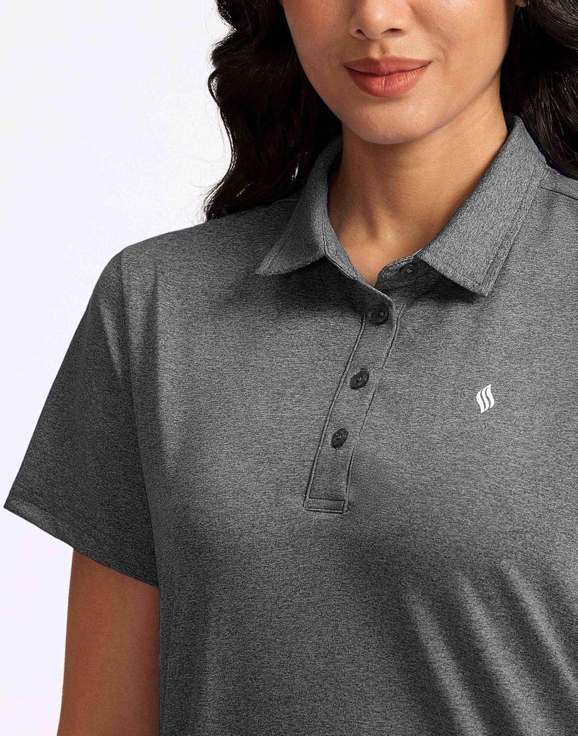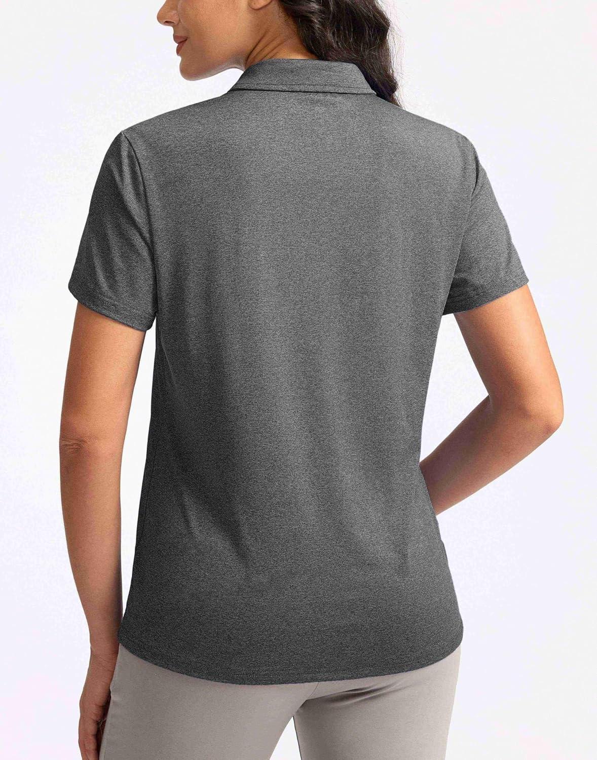 Women’s Golf Shirt Short Sleeve Lightweight Moisture Wicking Work Tennis Tops Collared Polo Shirts for Women with 4-Button(Charcoal)