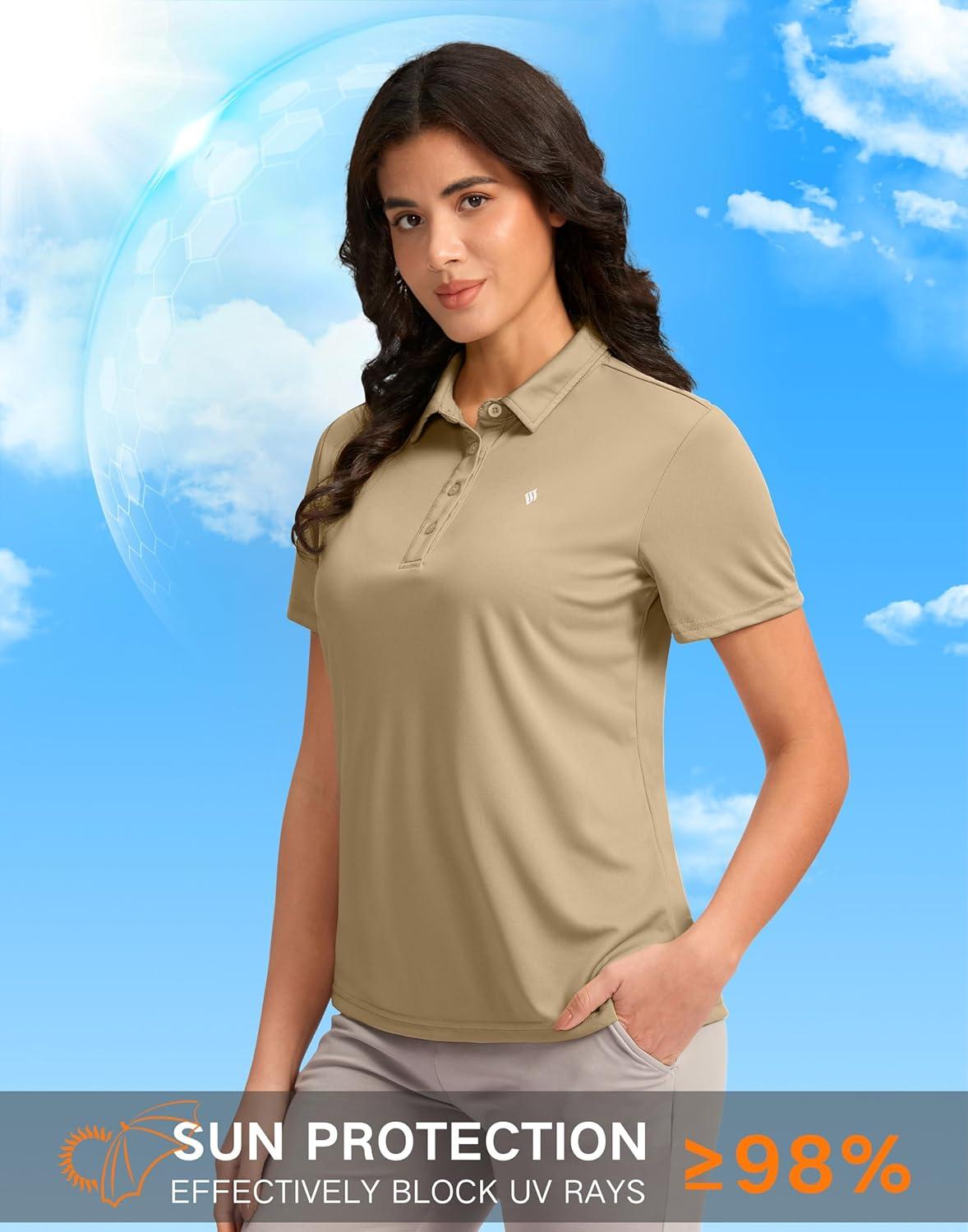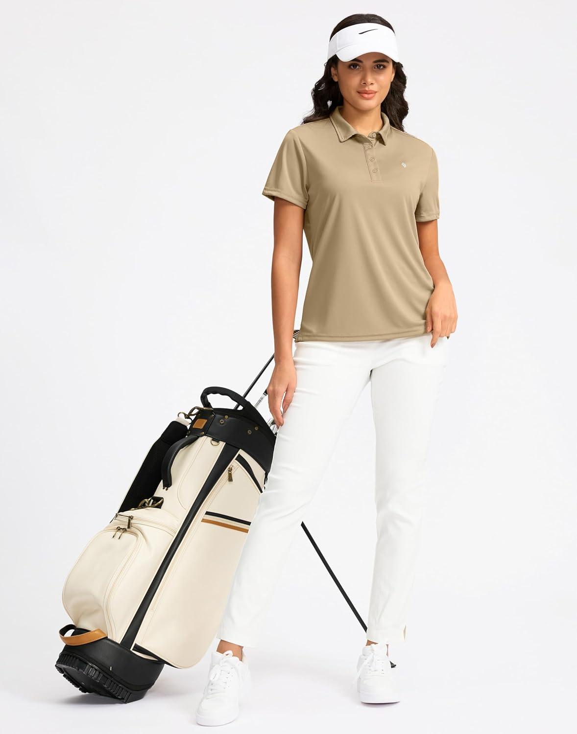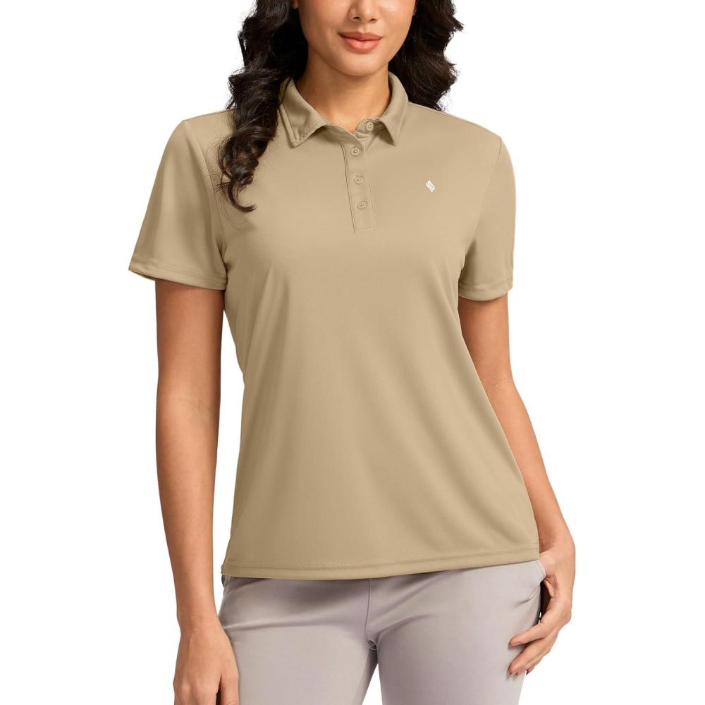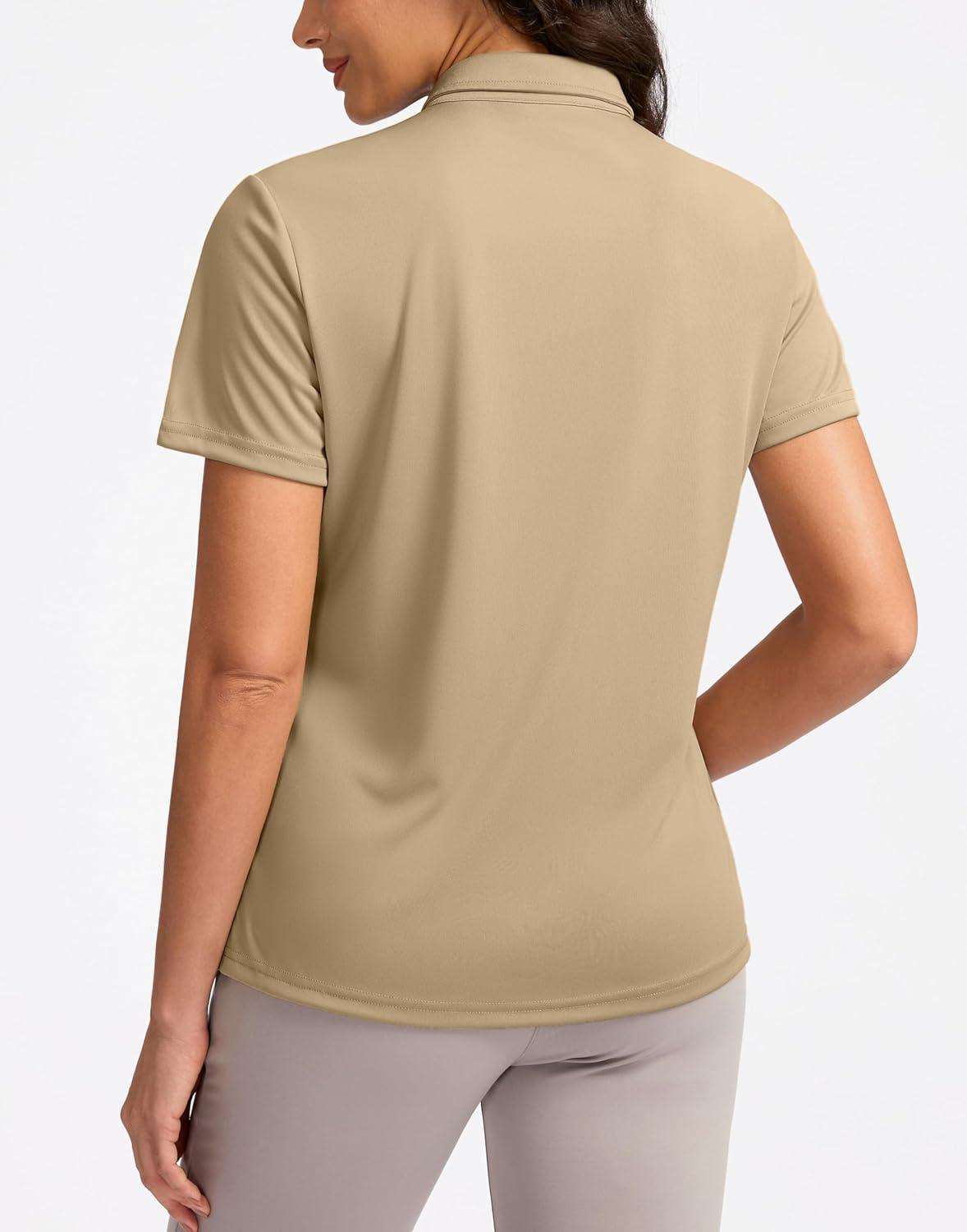 Women’s Golf Shirt Short Sleeve Lightweight Moisture Wicking Work Tennis Tops Collared Polo Shirts for Women with 4-Button(Khaki)