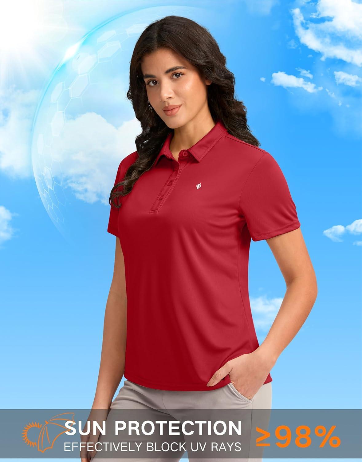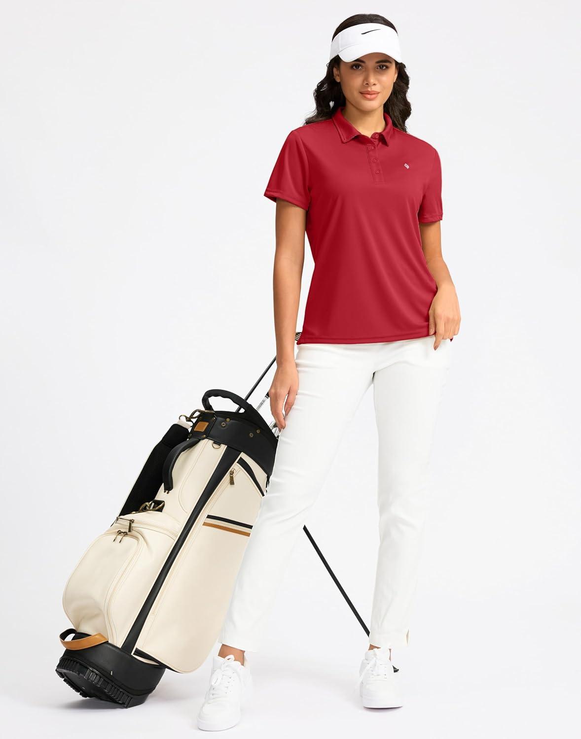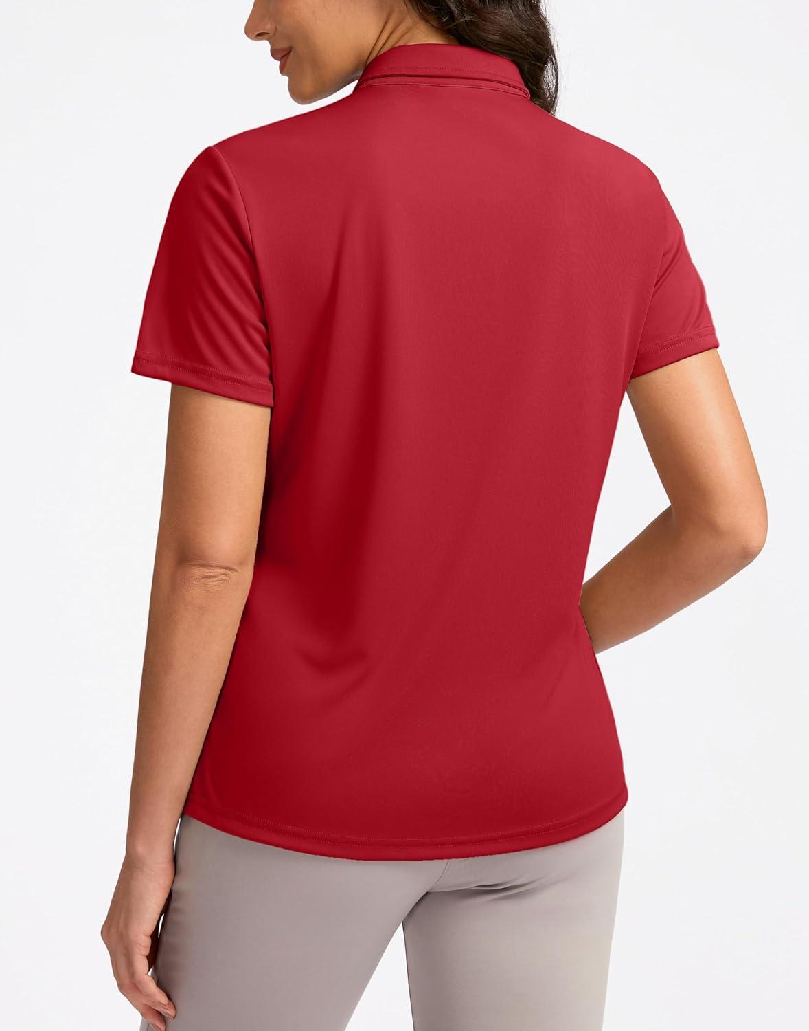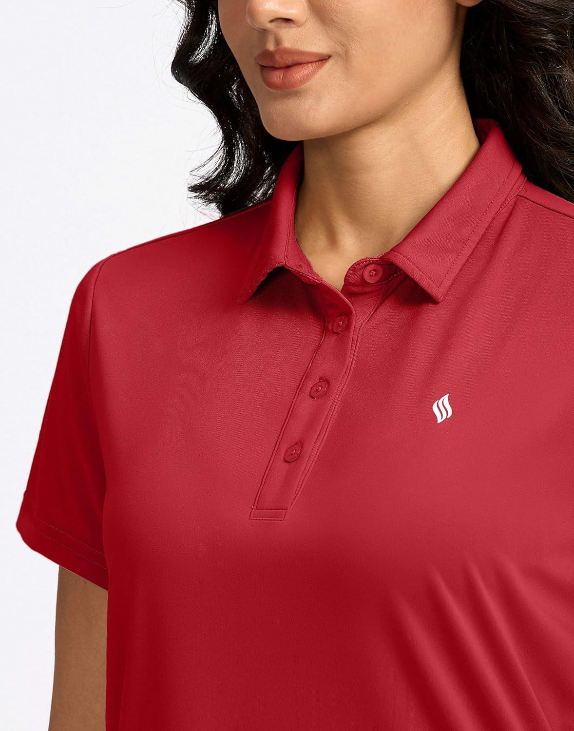 Women’s Golf Shirt Short Sleeve Lightweight Moisture Wicking Work Tennis Tops Collared Polo Shirts for Women with 4-Button(Red)