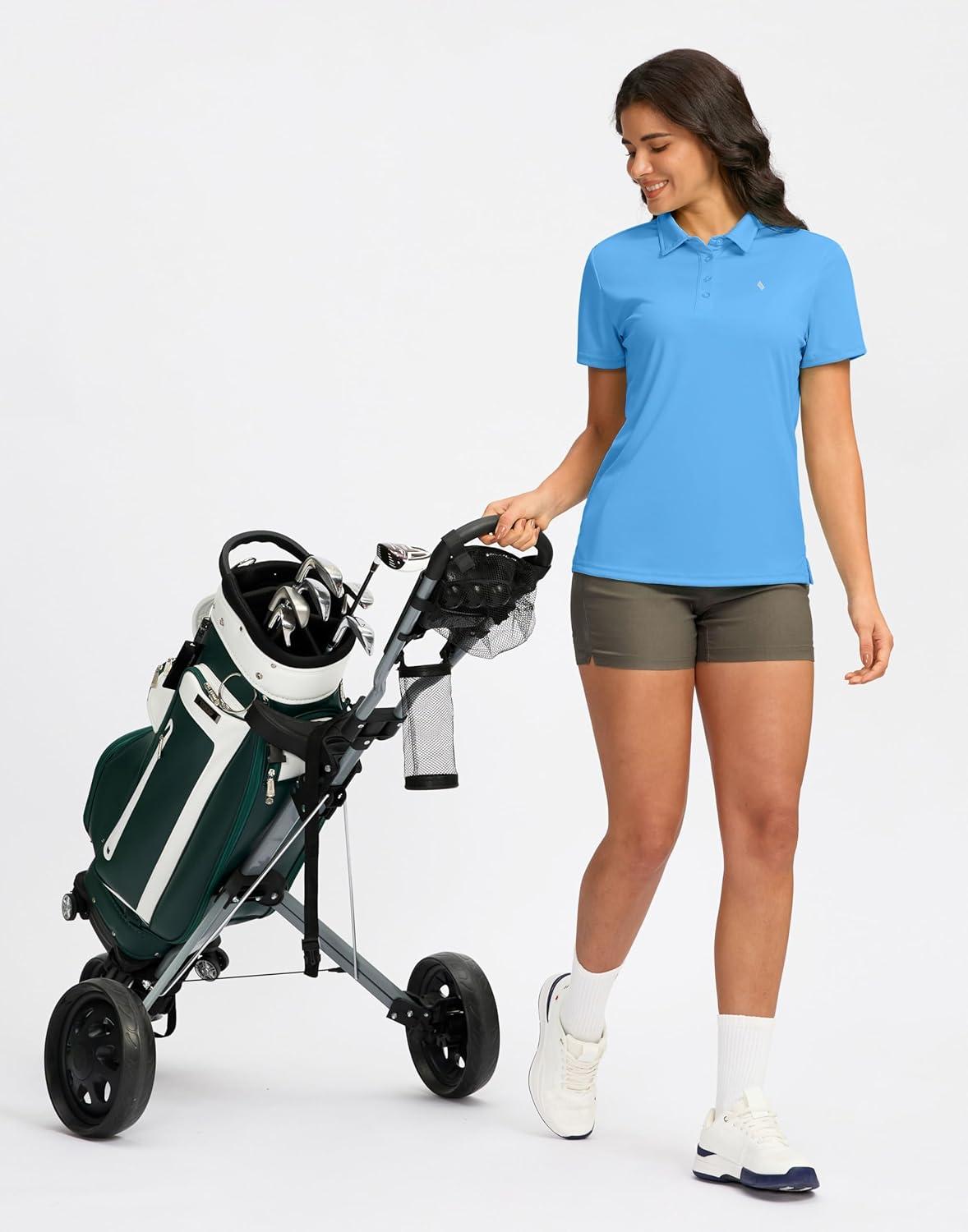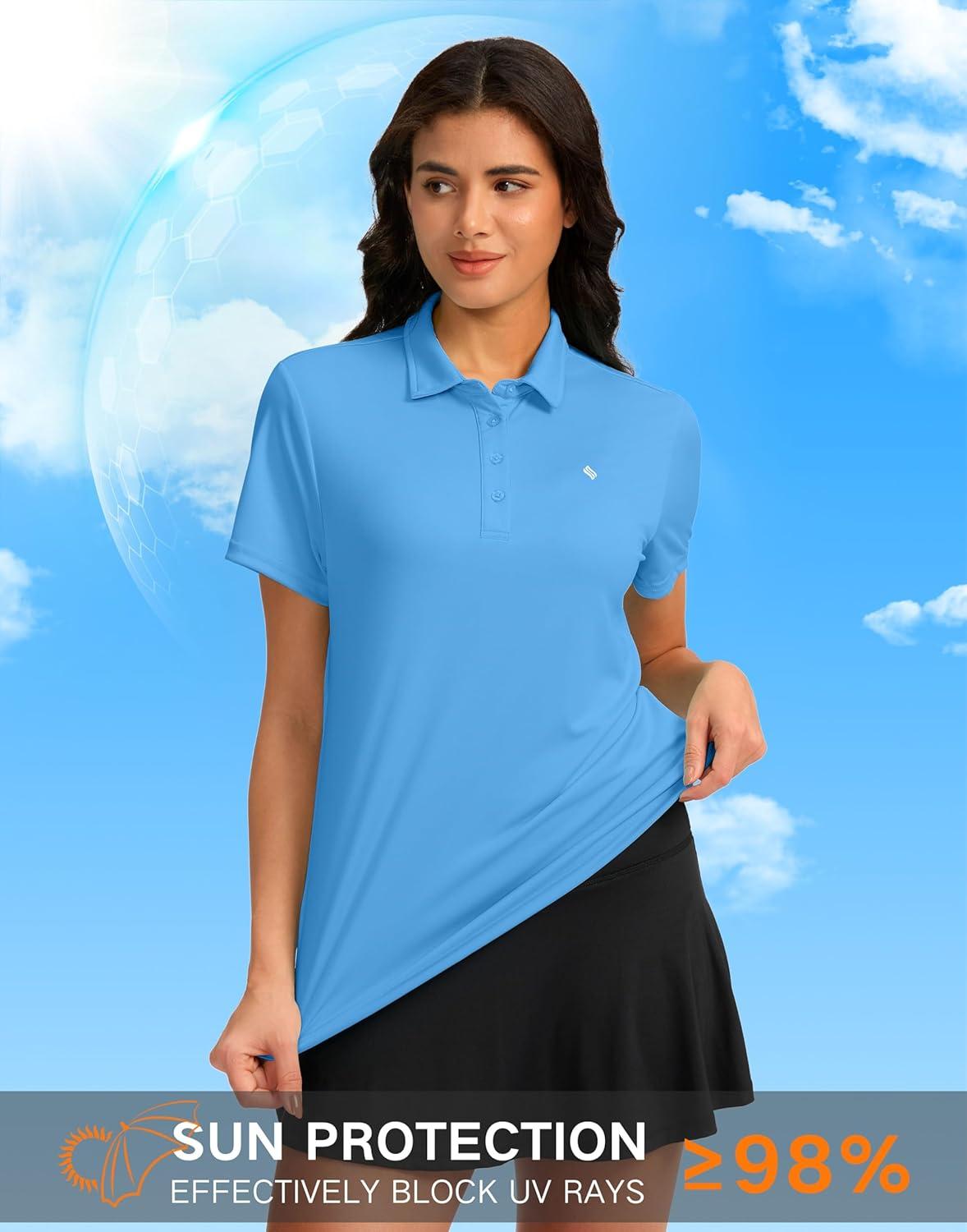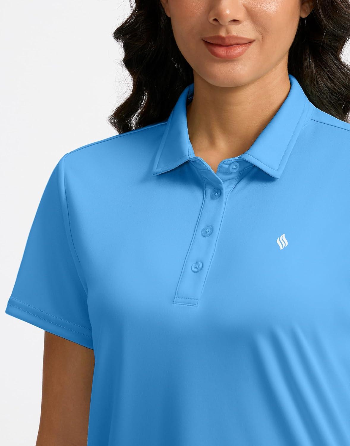 Women’s Golf Shirt Short Sleeve Lightweight Moisture Wicking Work Tennis Tops Collared Polo Shirts for Women with 4-Button(Sky Blue)